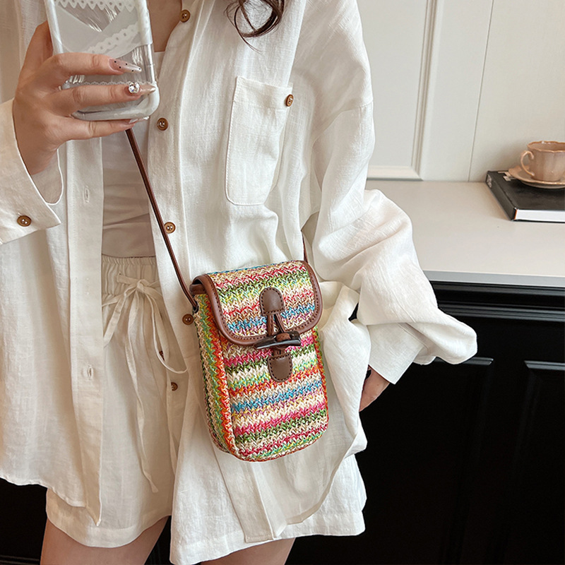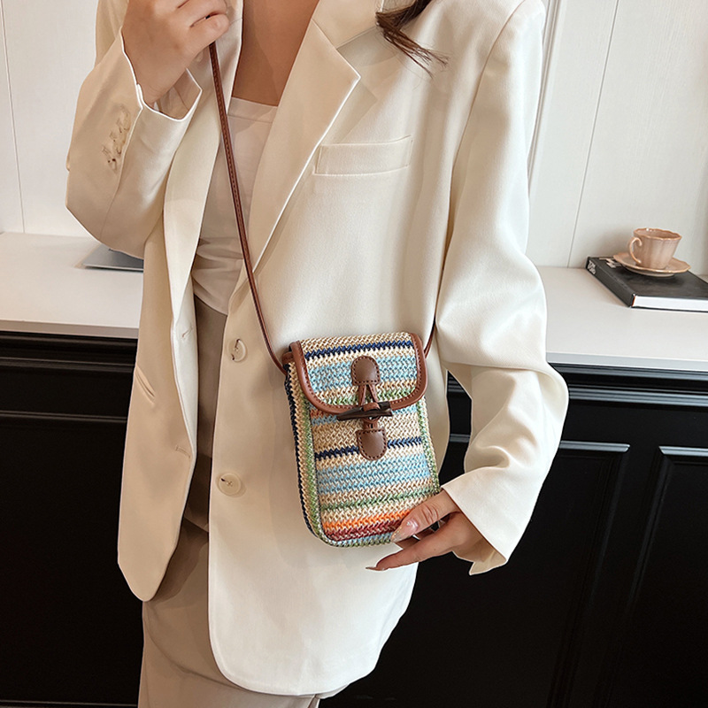| nameOriginal | Straw Bag Women's 2024 New Niche Color Woven Women's Shoulder Crossbody Bag Casual Contrast Color Mobile Phone Bag for Women |