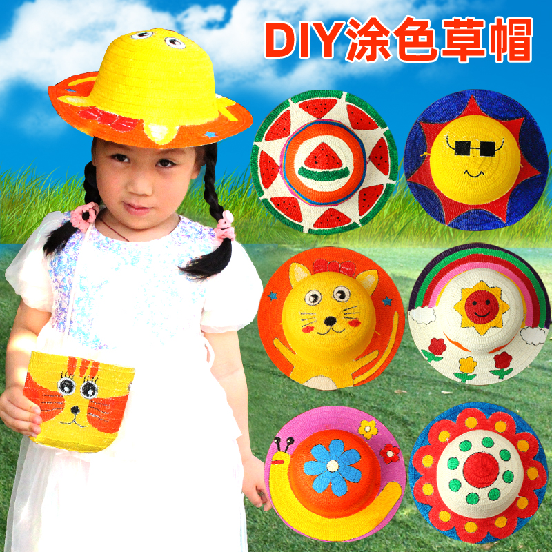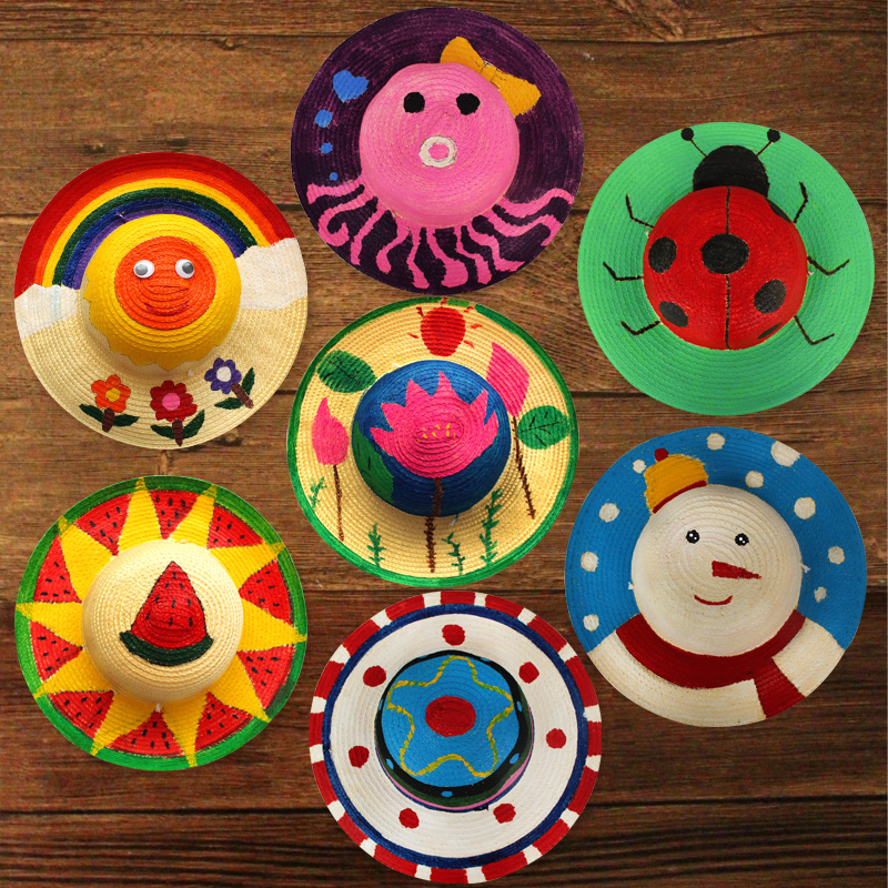 | nameOriginal | Straw hat diy painting hat children's kindergarten color painting hand painted graffiti color creative handmade diy material bag |