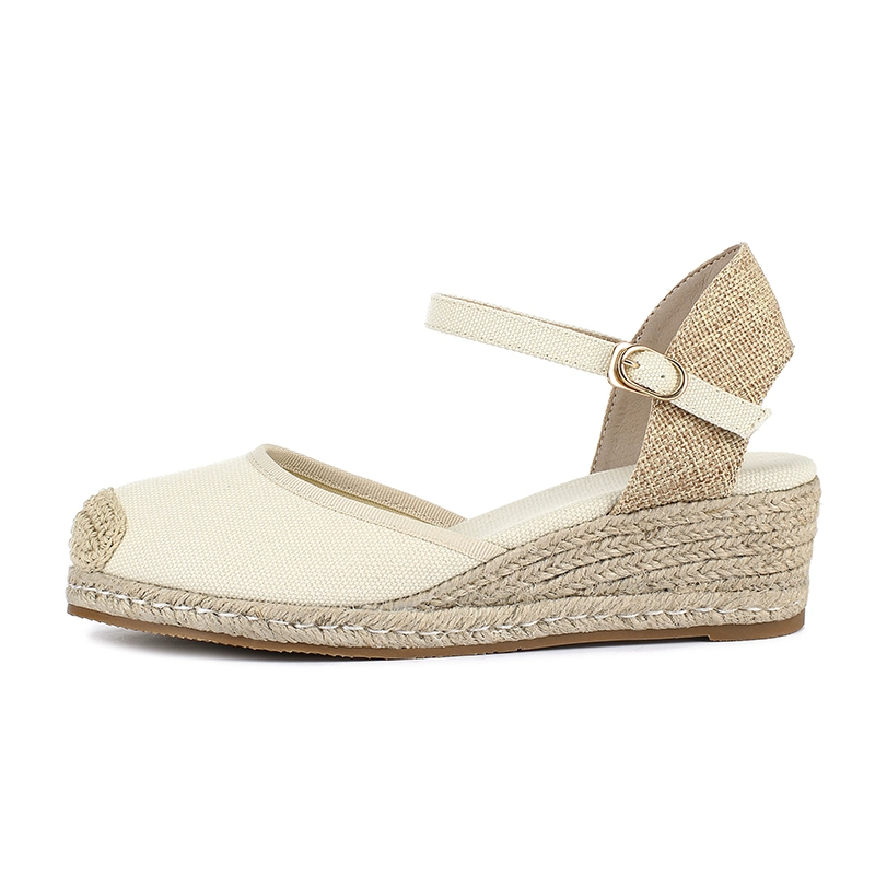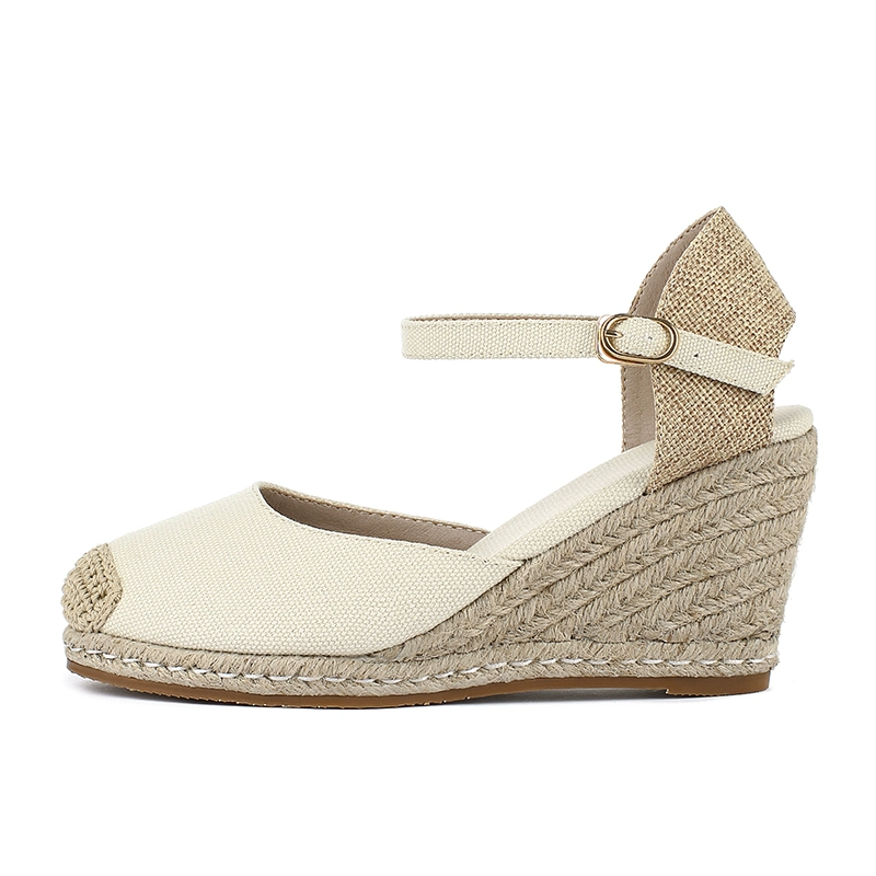 | nameOriginal | Straw toe French wedge heel canvas sandals |