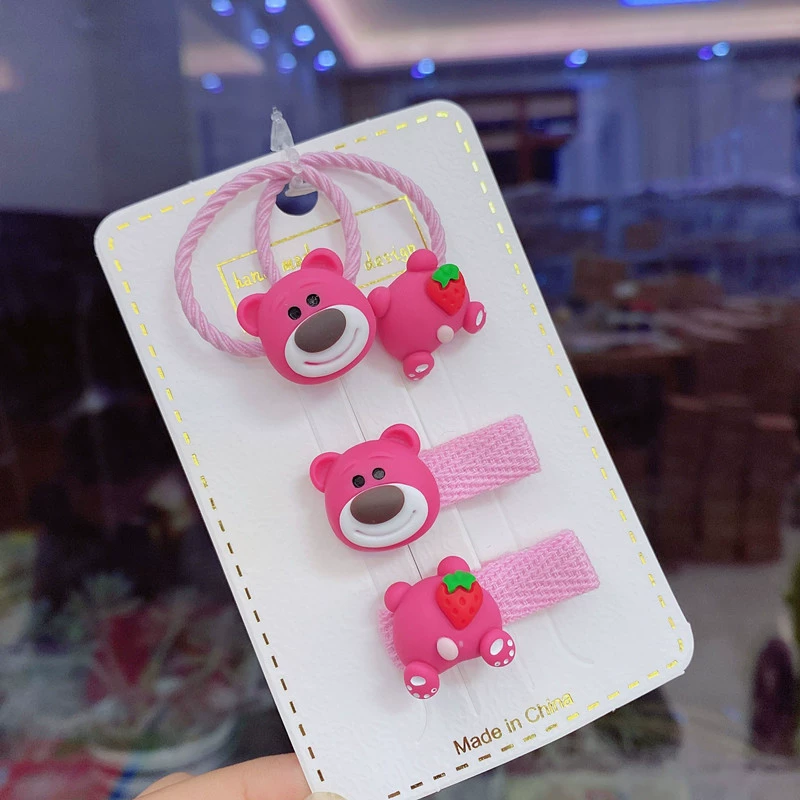 | nameOriginal | Strawberry Bear Cute Children's Hair Tie Baby Hair Twist Small Pair Clip Girls Little Bear Pitaya Color Hair Tie |