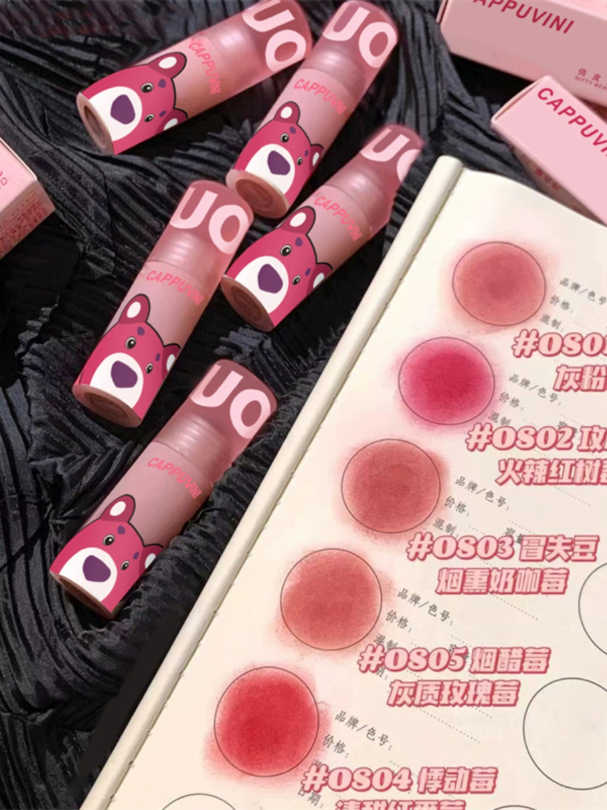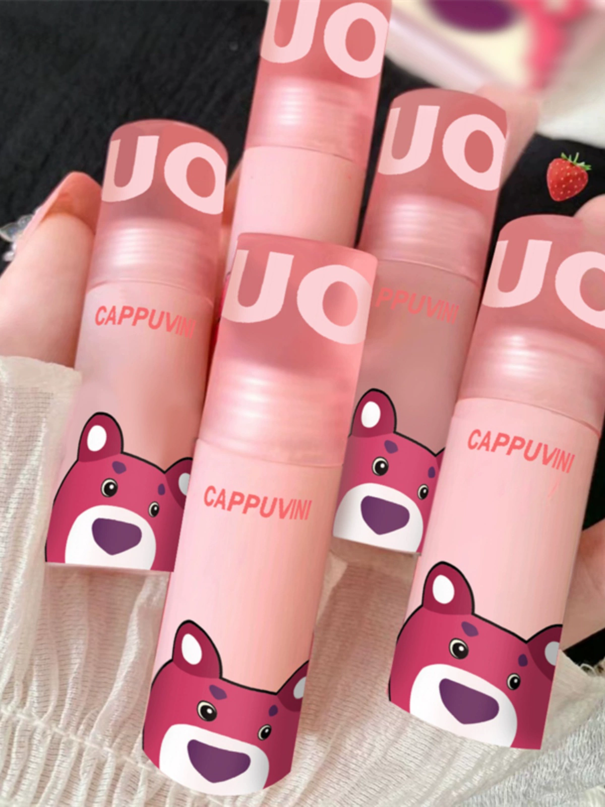 | nameOriginal | Strawberry Bear Lip Glaze Velvet Matte Matte Lip Mud Low Saturation Dragon Fruit Color Milk Coffee Rose Zong Gray Pink Lipstick |