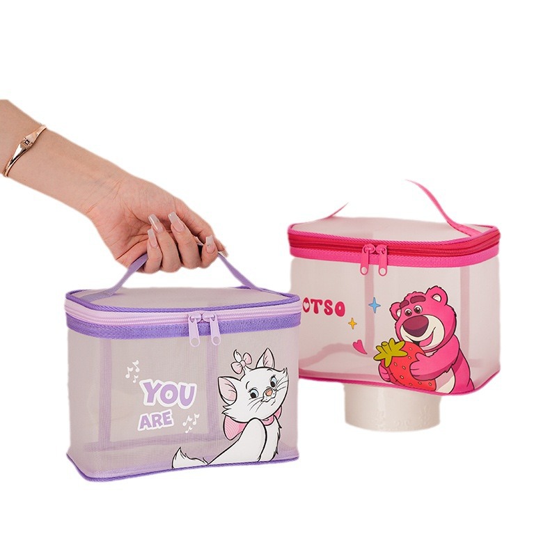 | nameOriginal | Strawberry Bear Mesh Makeup Bag Large Capacity Travel Portable Wash Bag Lightweight Cartoon Transparent Mesh Bag  |