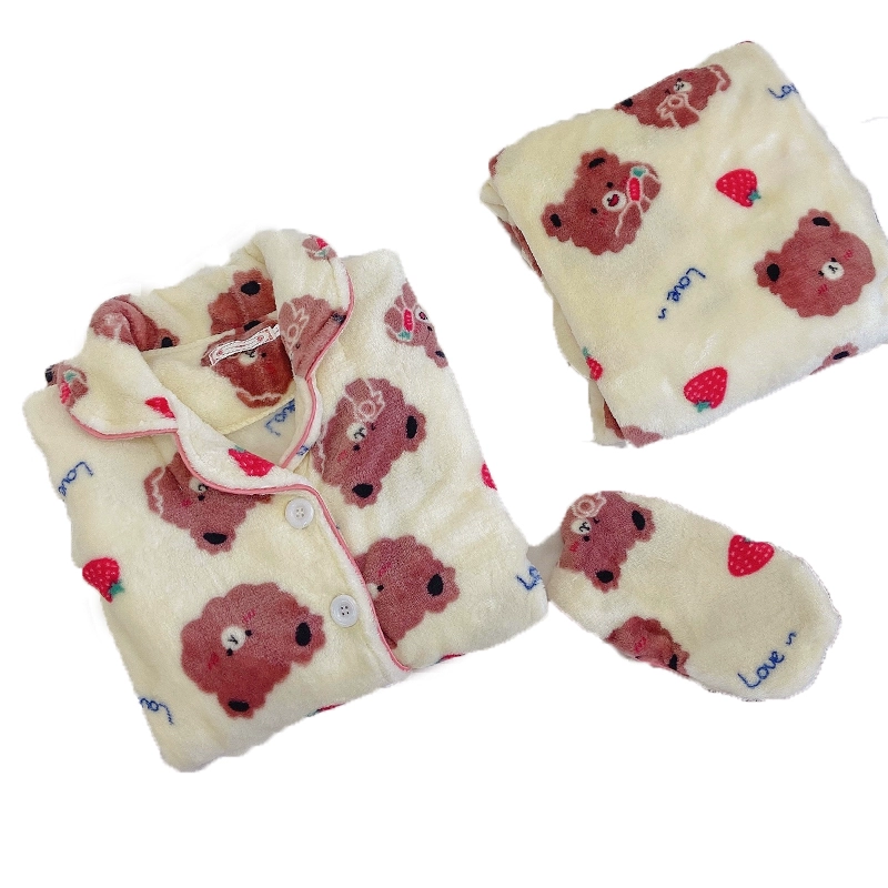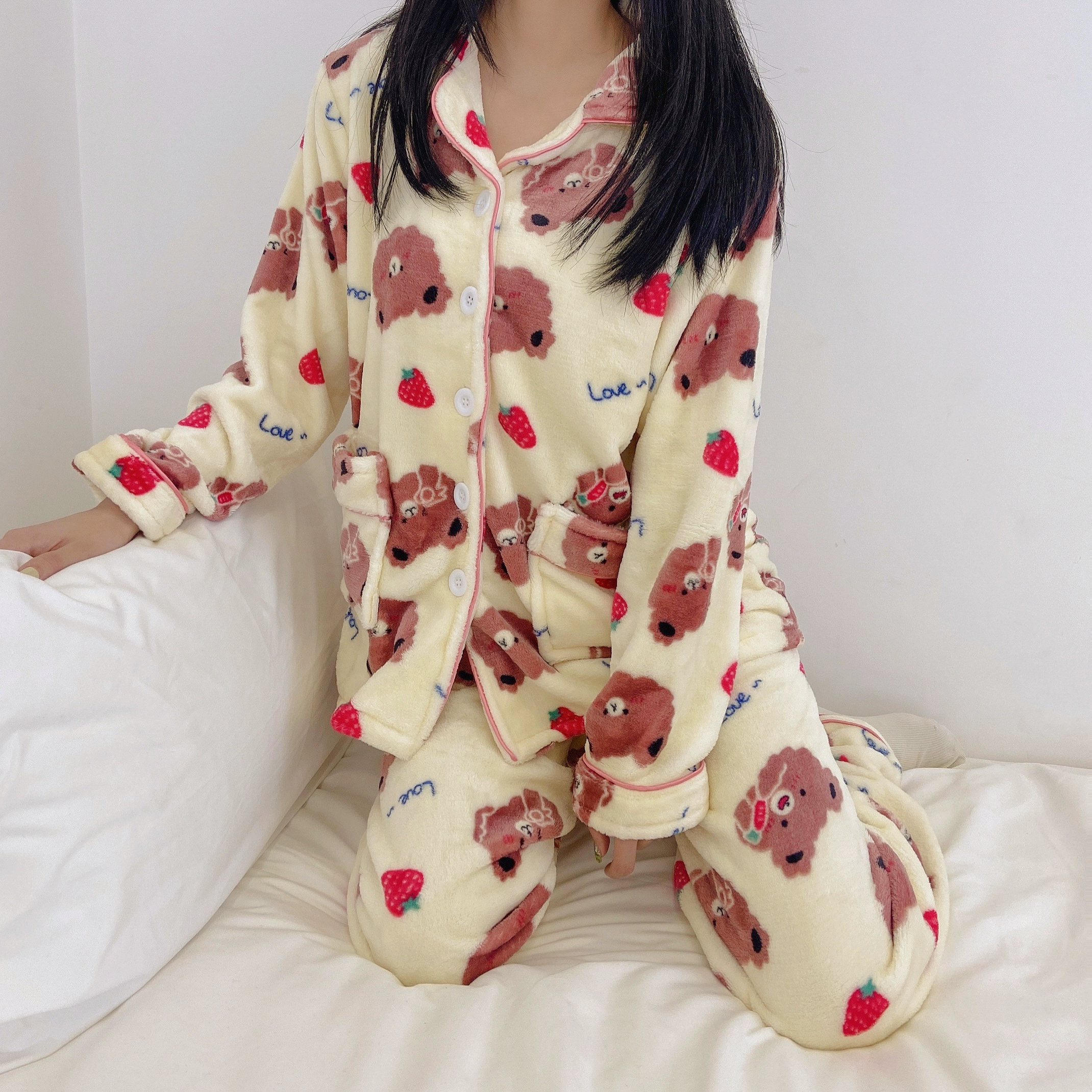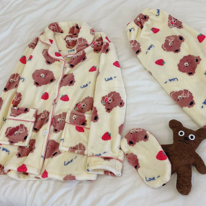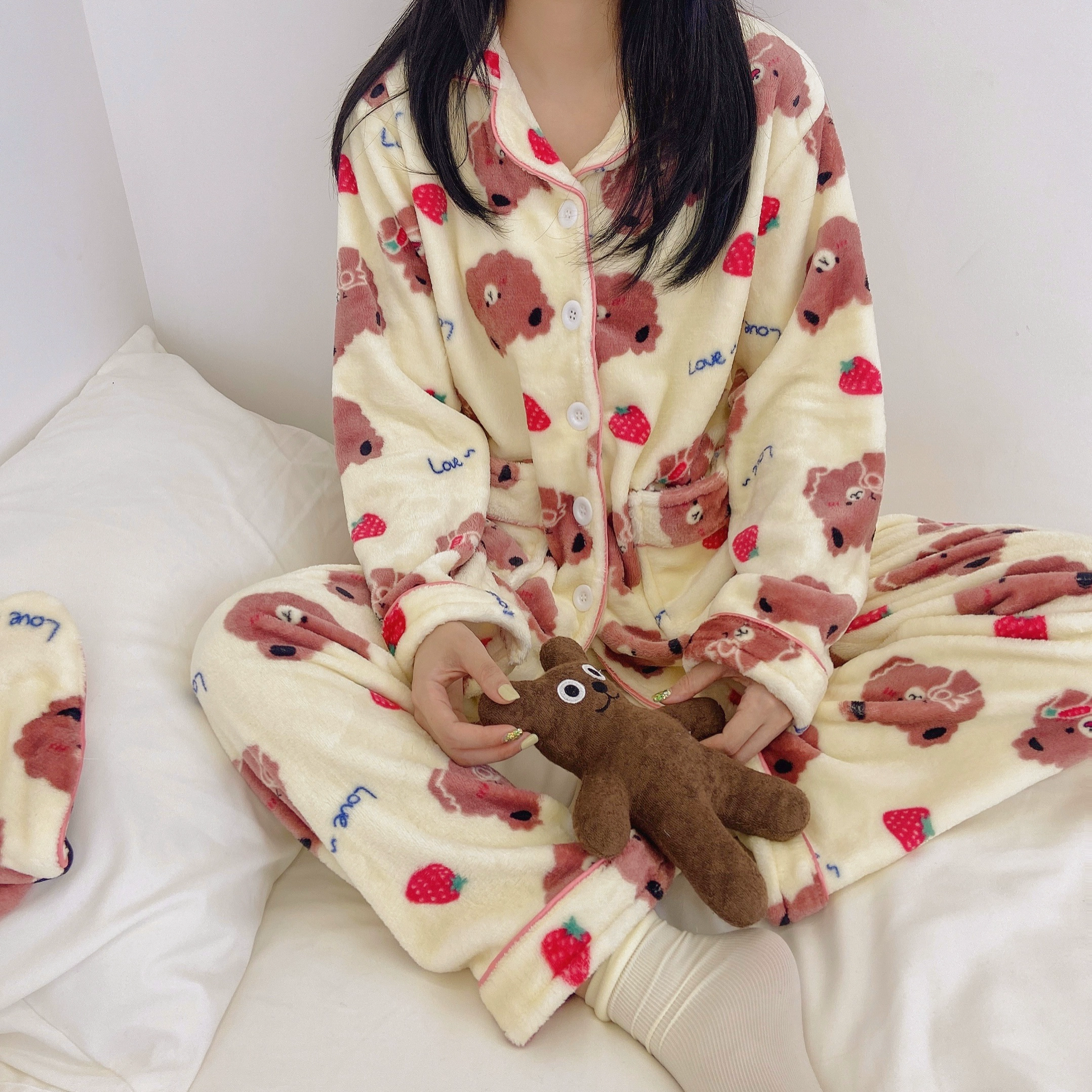 | nameOriginal | Strawberry bear pajamas for women winter coral velvet thickened velvet college dormitory flannel winter wearable suit |