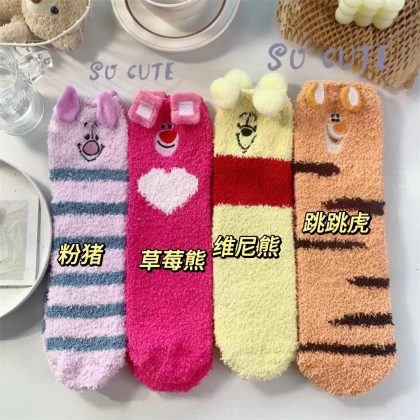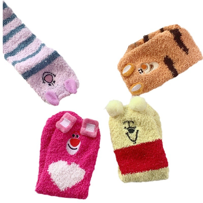 Strawberry bear pooh bear coral velvet socks women’s autumn and winter fleece-lined warm girl’s home floor socks breathable confinement socks