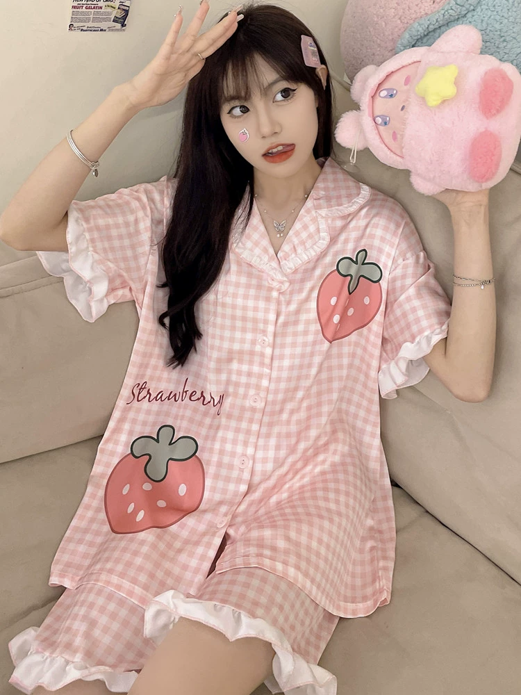 | nameOriginal | Strawberry Bear Women's Ice Silk 200 Jin Home Clothes Pajamas |