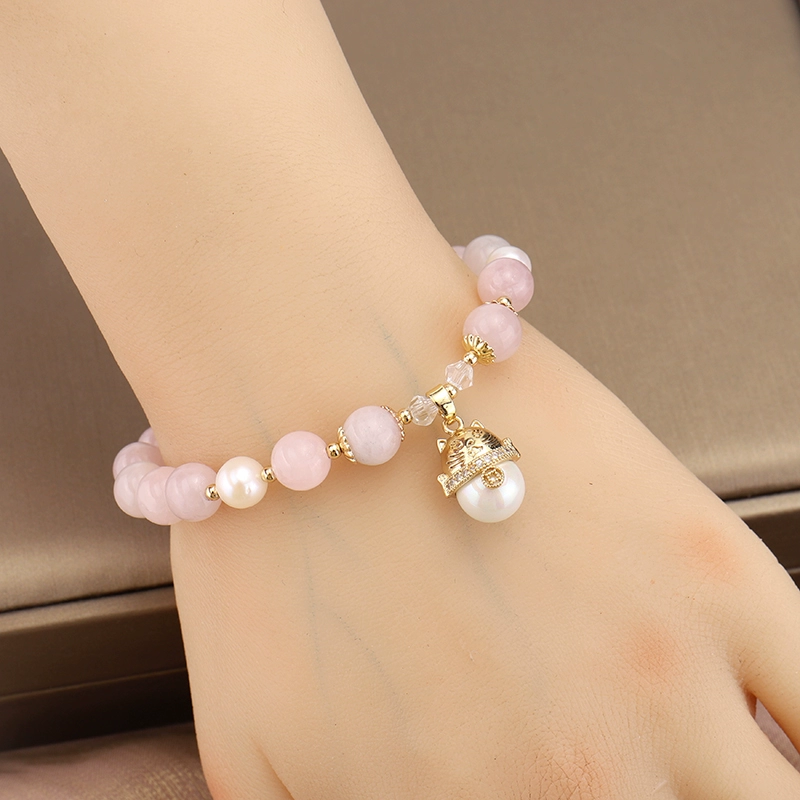 Strawberry crystal bracelet for women Japanese and Korean new style light luxury cold style ins pink crystal bracelet lucky cat high quality bracelet