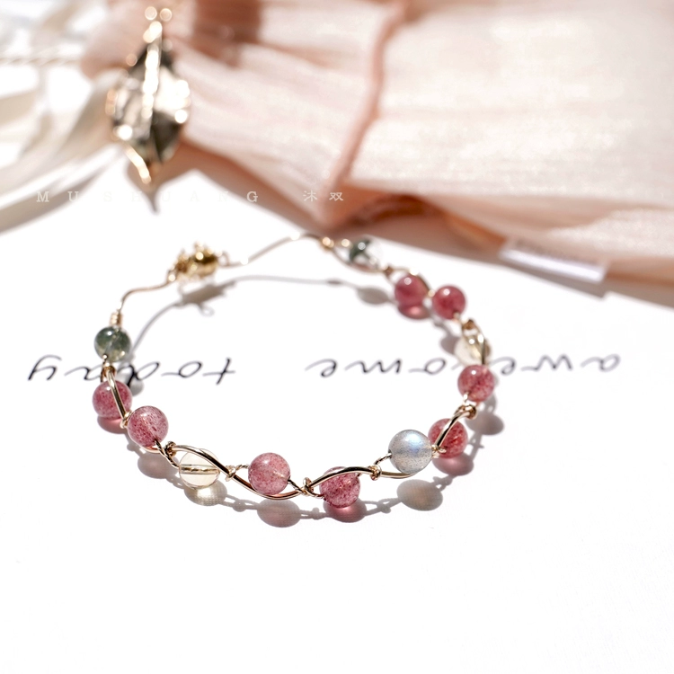 | nameOriginal | Strawberry Crystal Green Ghost Citrine Transfer Bead Bracelet Moonstone Bracelet Gray Moonlight Bracelet Women Natural Authentic |