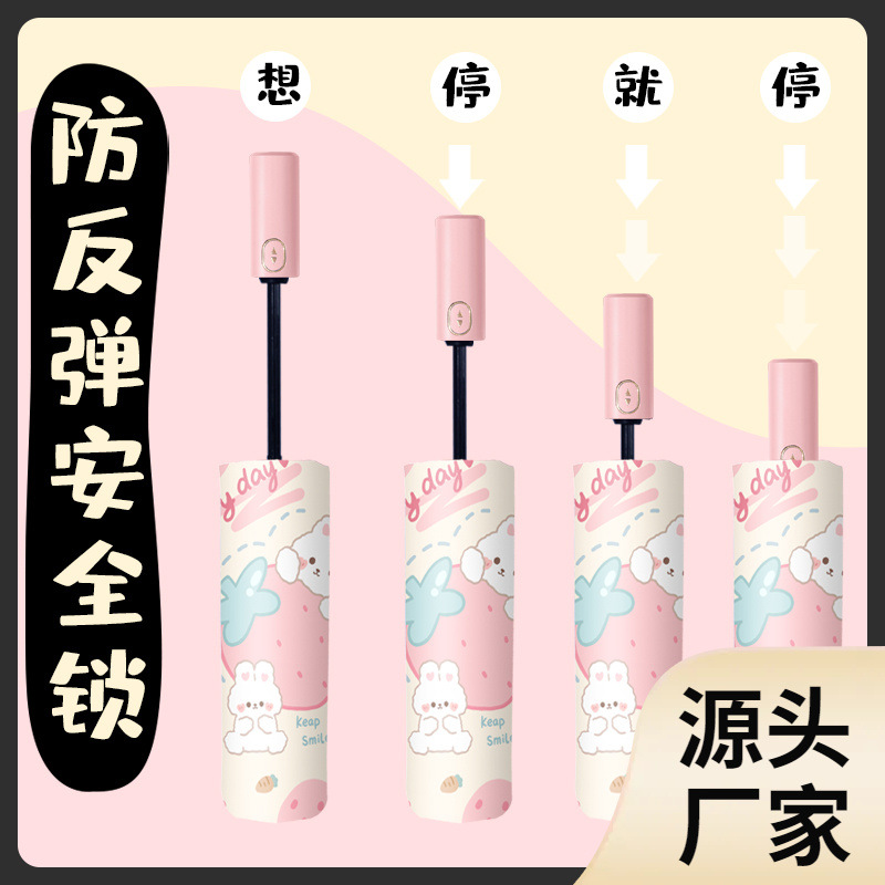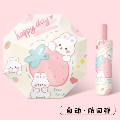 | nameOriginal | Strawberry Rabbit Security Rebound Children's Sunny Umbrella Female Primary School Students Sunny Rain Dual-Use School Folding Automatic Umbrella |