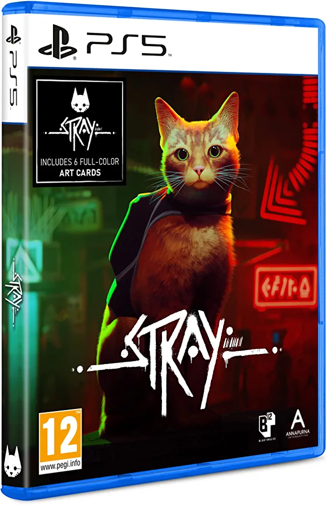 | descriptionOriginal | sTRAY See the world through the eyes of a cat and interact with the environment in playful ways. Be stealthy, nimble, silly, and sometimes as annoying as possible with the strange inhabitants of this mysterious world. Along the way, the cat befriends a small flying drone, known only as B-12. With the help of this newfound companion, the duo must find a way out. PLAYSTATION 5 Lost, alone and separated from family, a stray cat must untangle an ancient mystery to escape a long-forgotten city. Stray is a third-person cat adventure game set amidst the detailed, neon-lit alleys of a decaying cybercity and the murky environments of its seedy underbelly. Roam surroundings high and low, defend against unforeseen threats and solve the mysteries of this unwelcoming place inhabited by curious droids and dangerous creatures. Untangle an ancient mystery to escape a long-forgotten cybercity in Stray |