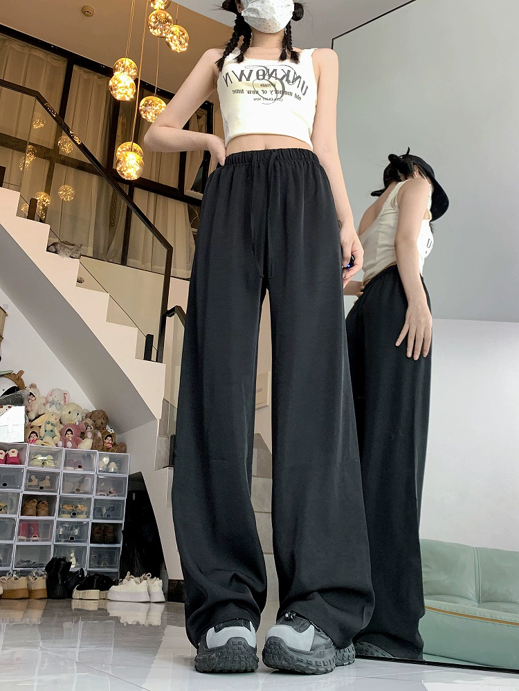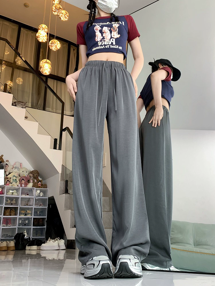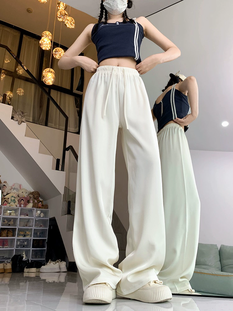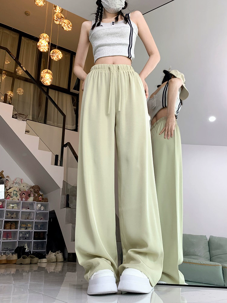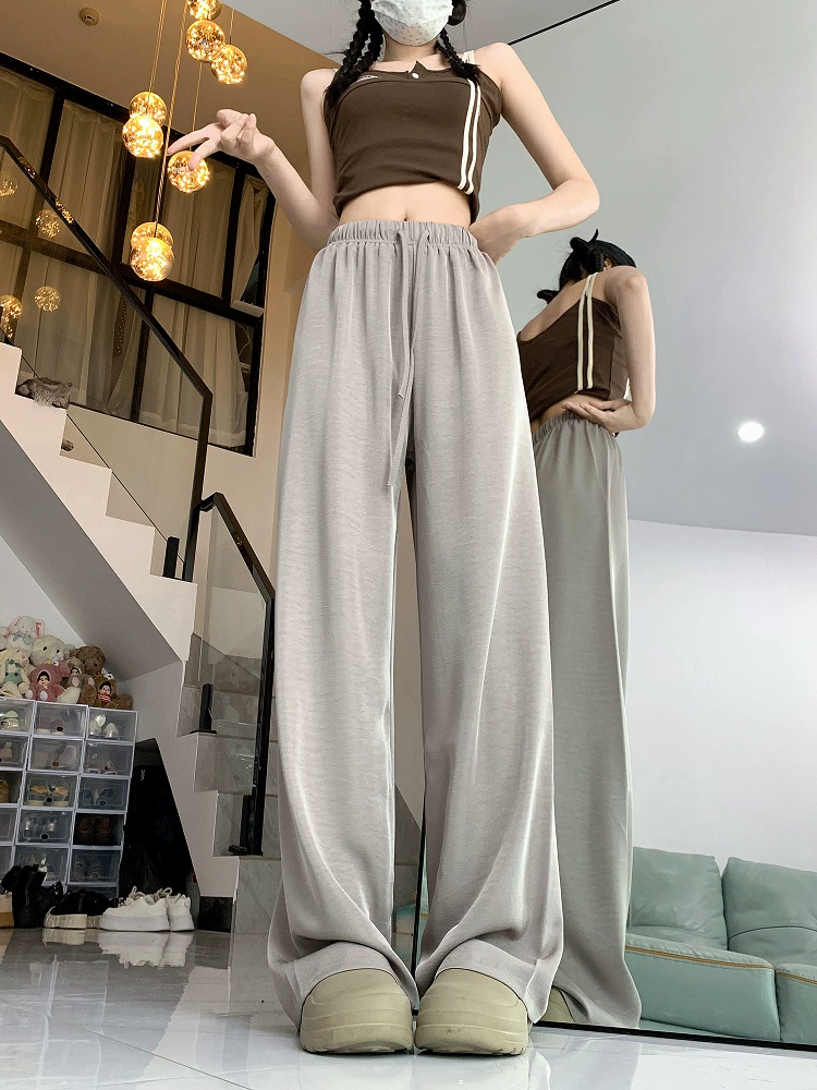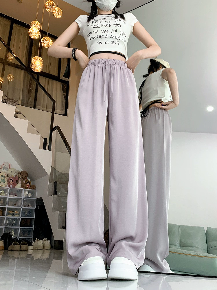 | nameOriginal | Streaming drawstring elastic waist draped floor-length trousers satin |
