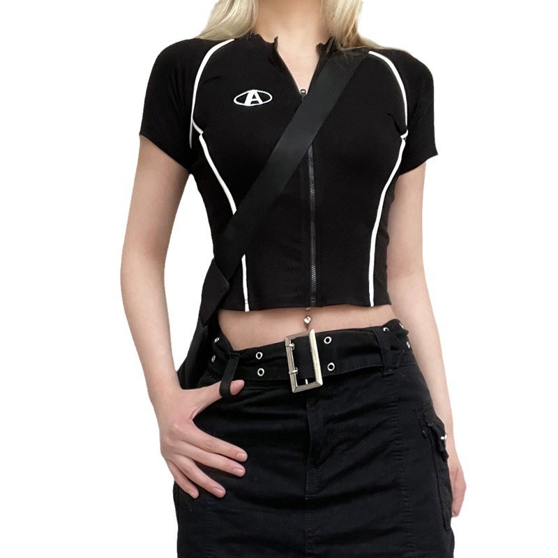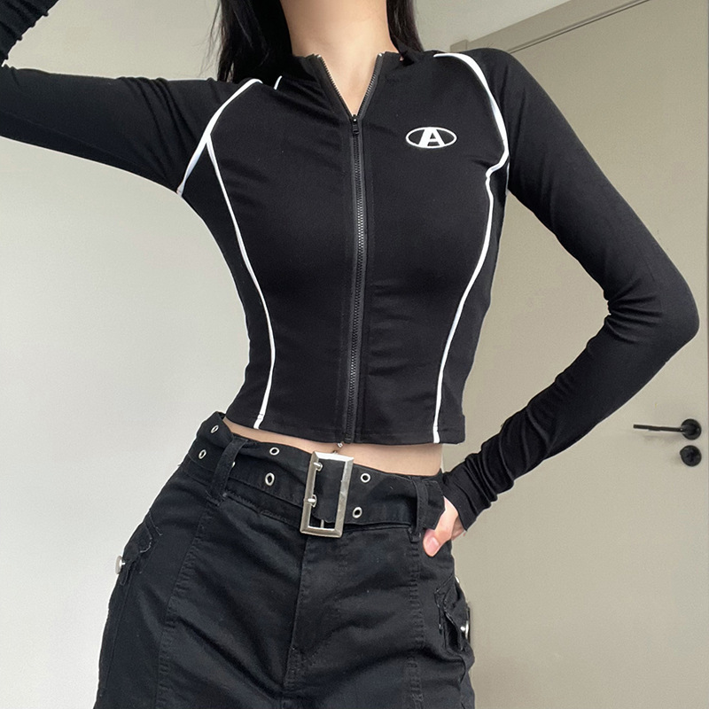 | nameOriginal | Street Biker-style Bud Strip Color-block Zipper Crop Top Spice Girls Alphabet Print Slim-fit Long-sleeved Jacket Coat |