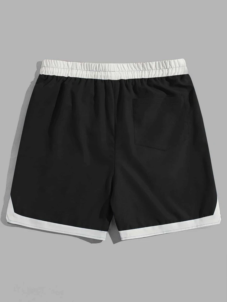 ROMWE Street Life Guys Letter Graphic Drawstring Waist Contrast Trim Shorts