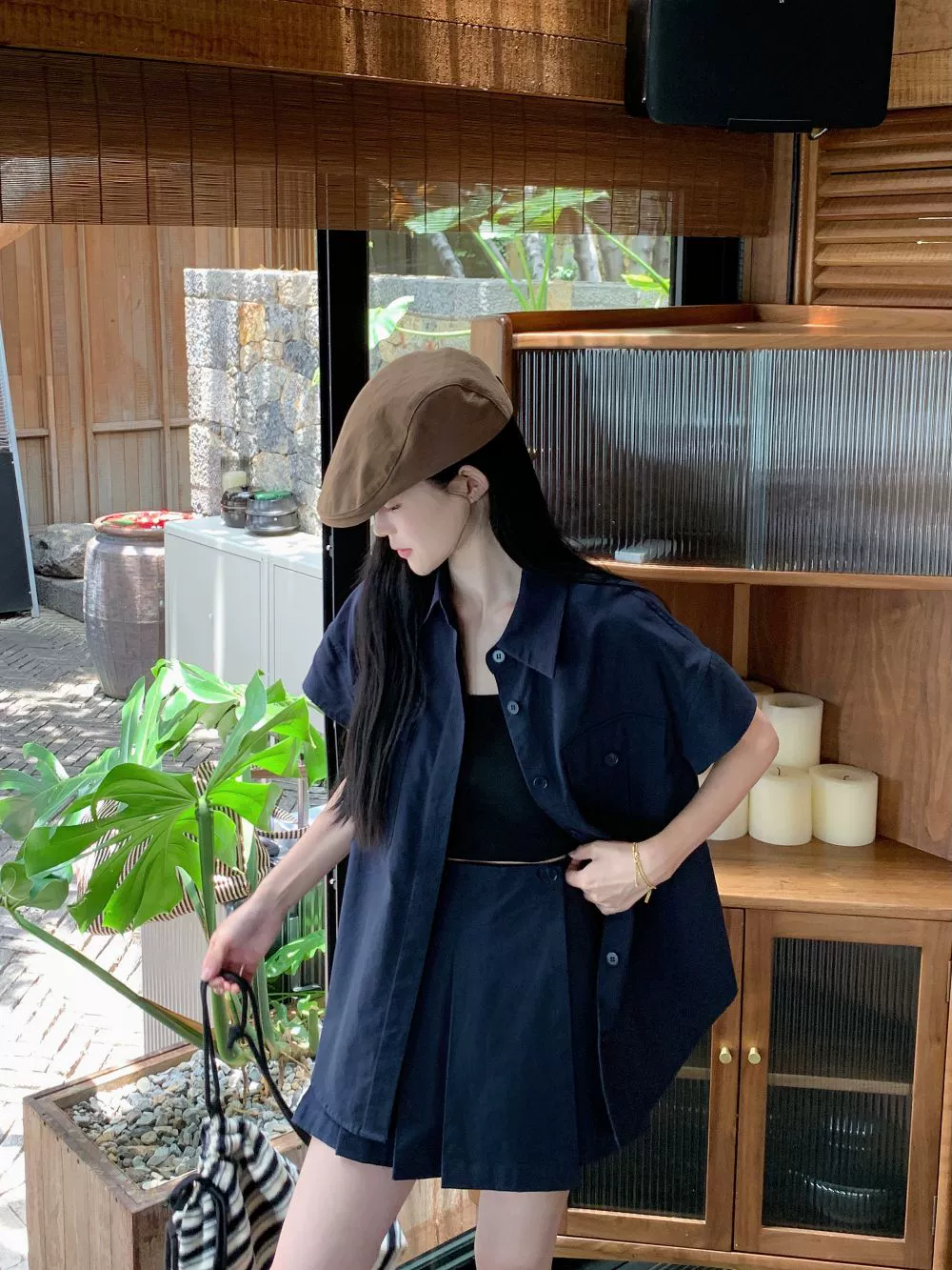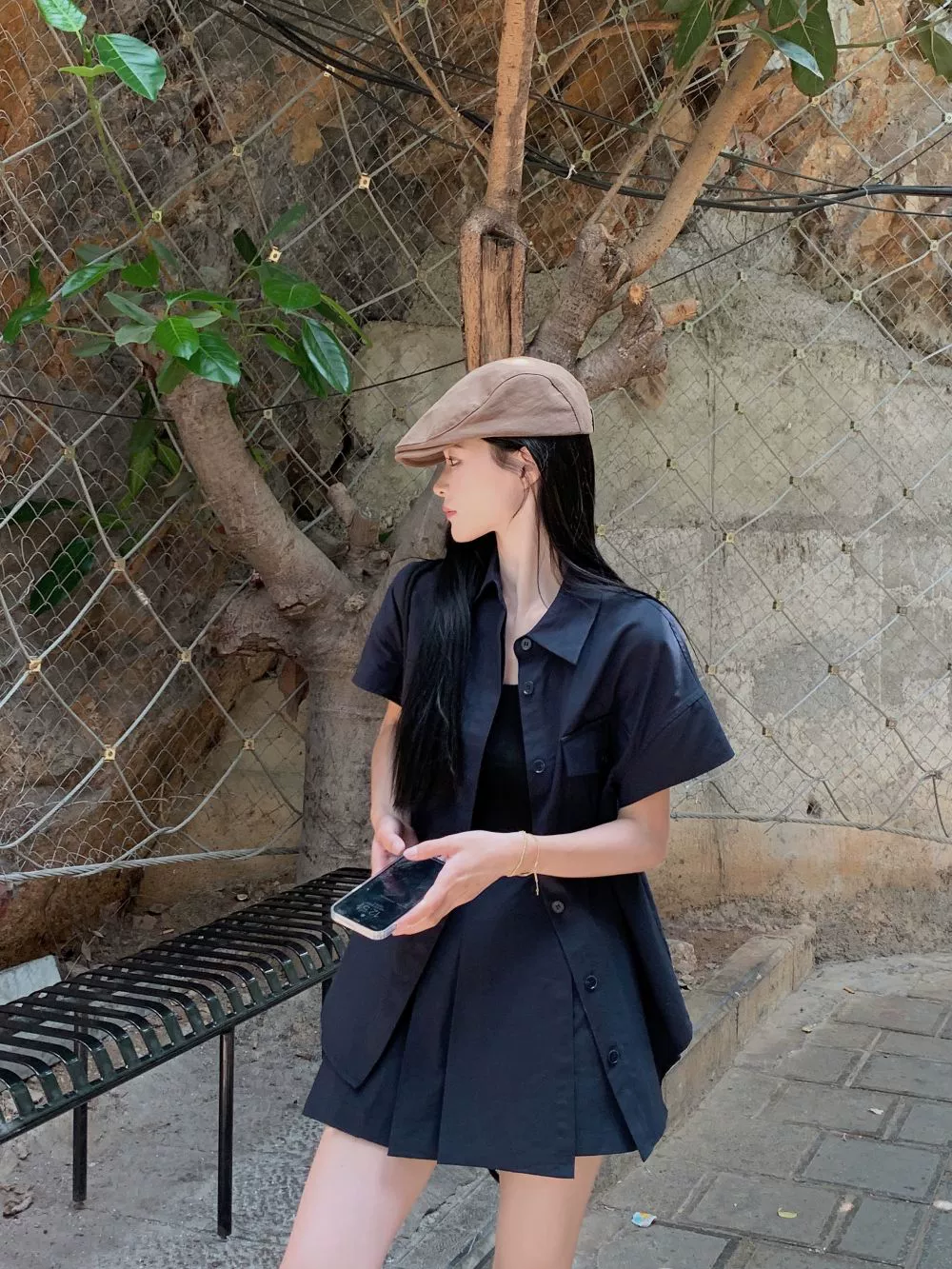 Street retro short-sleeved shirt pleated fashion suit