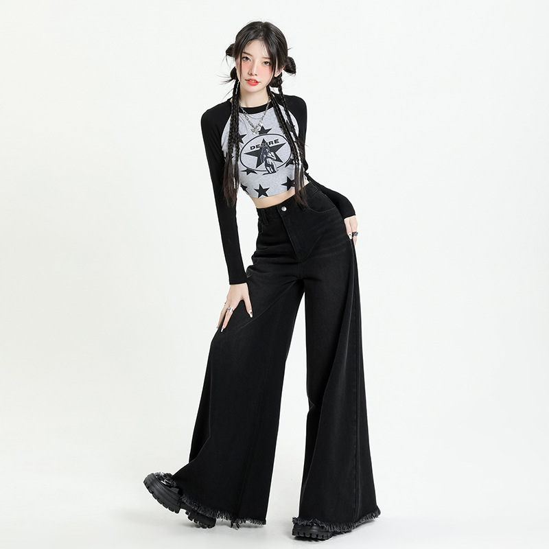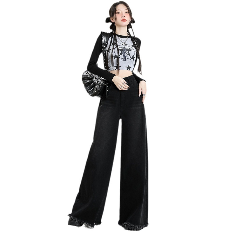 | nameOriginal | Street Style Washed Retro Subculture Black Grey Wide Leg Denim Women's Sweeping Pants Elephant Leg Large Leg Foot Burr Edge |