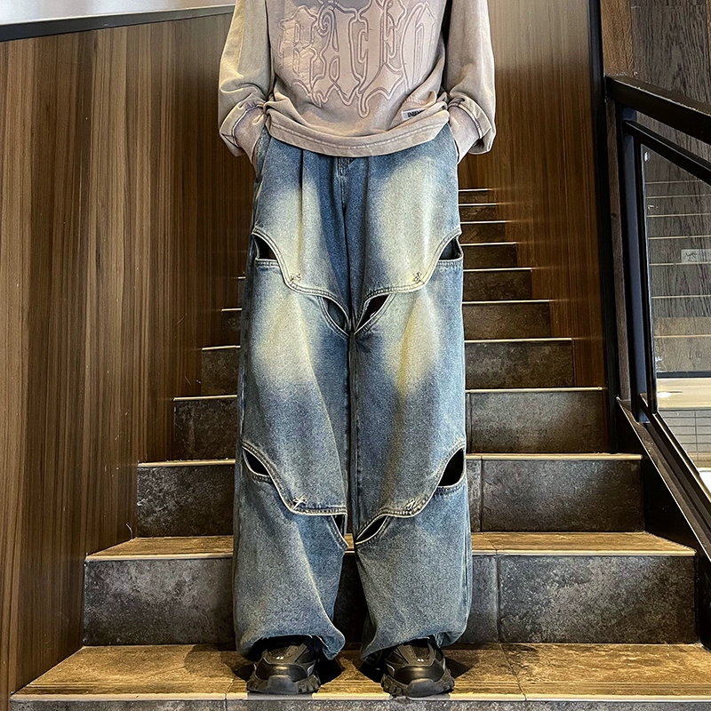 | nameOriginal | Street tie-dye design ripped jeans for men and women vibe style washed retro high street slim fit versatile pants |