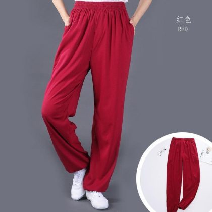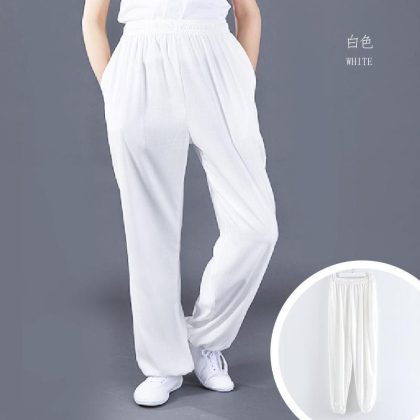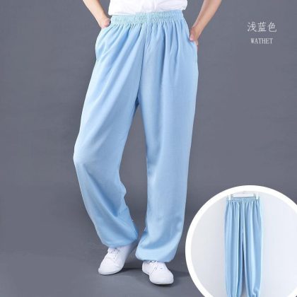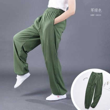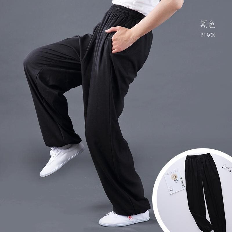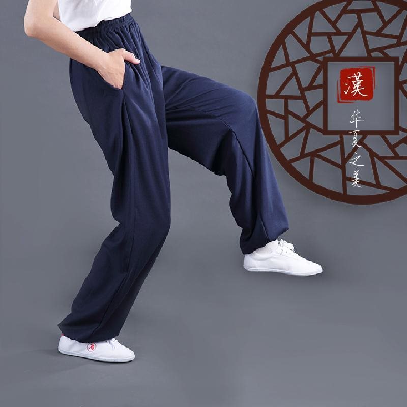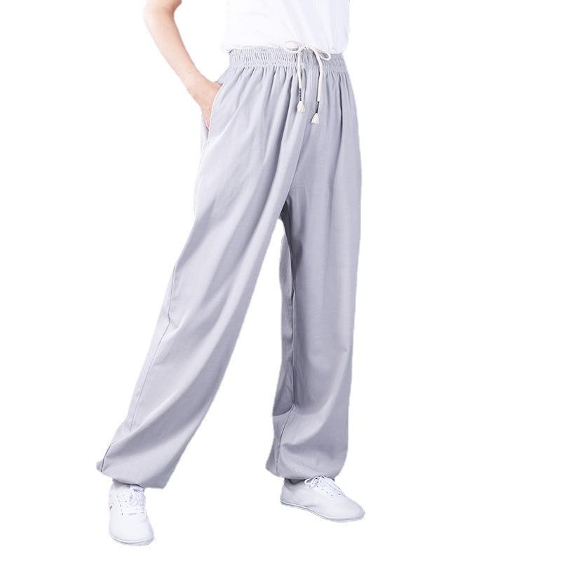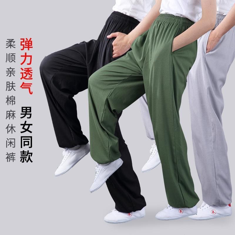 Stretch Cotton and Linen Side Pocket Tai Chi Clothing Pants Spring and Autumn Sports Leisure Large Size Practice Wushu Yoga Competition Loose for Men and Women