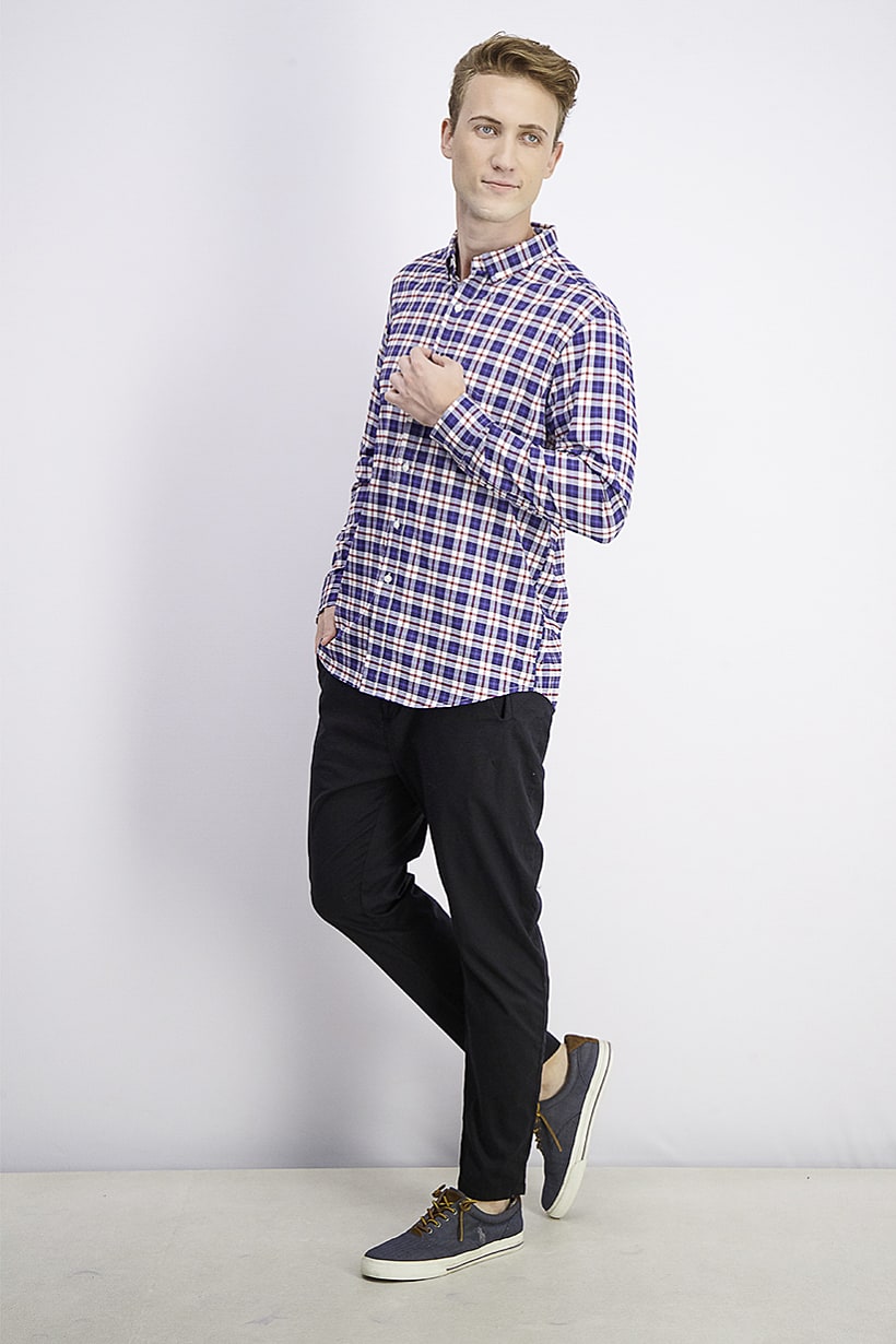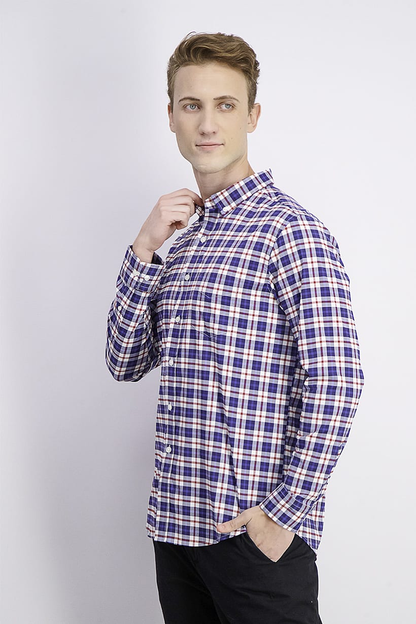 | descriptionOriginal | Occasion : Casual, Fabrics : 100% Cotton, Types of Neckline & Collar : Spread collar , Types of Hem : Straight hem, Pattern & Print : Plaid, Care : Machine washable, Types of Closures : Button, Color Family : Navy Blue, Size shown : International, Sleeve Length : Long Sleeve, Fit : Classic fit, |