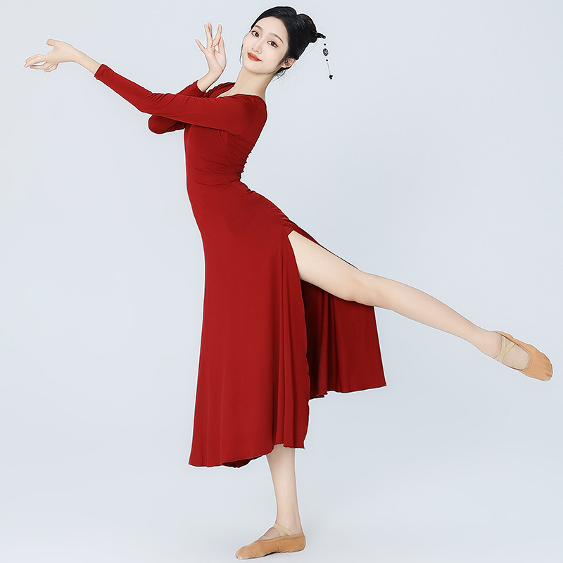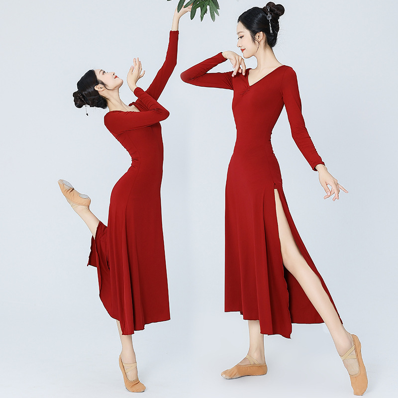 | nameOriginal | Stretch Slim-fit modern ballet costume long skirt classical dance practice clothes solid color slit dress dance skirt |
