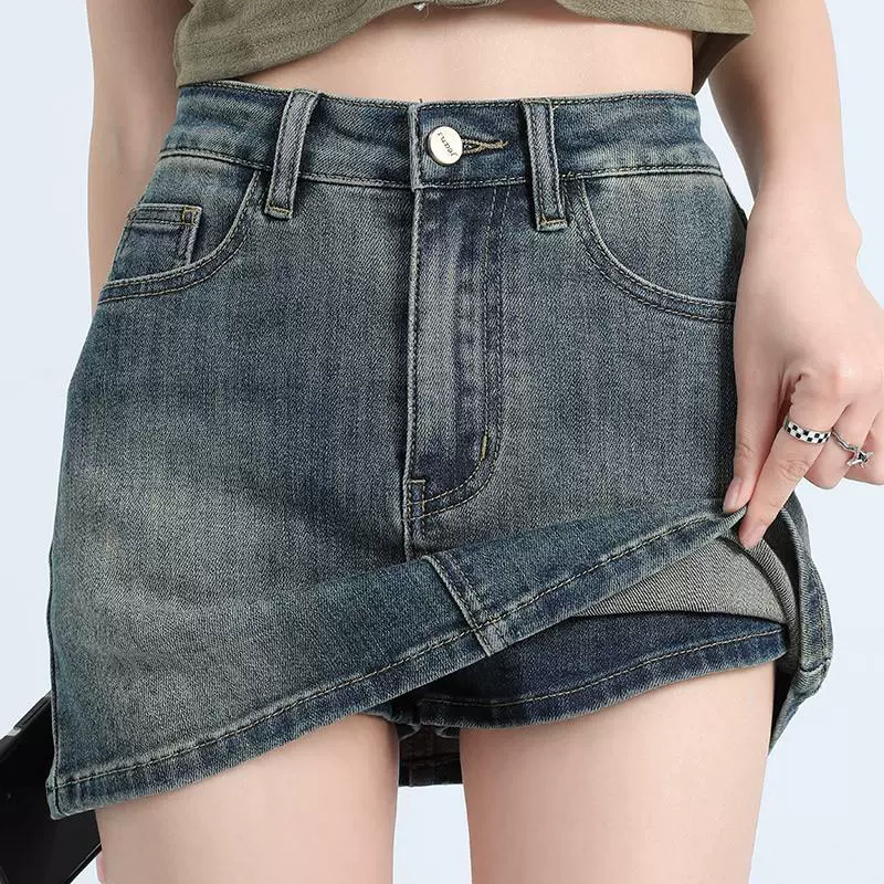 | nameOriginal | Stretch slimming retro anti-exposure hot girl denim skirt |