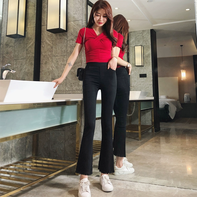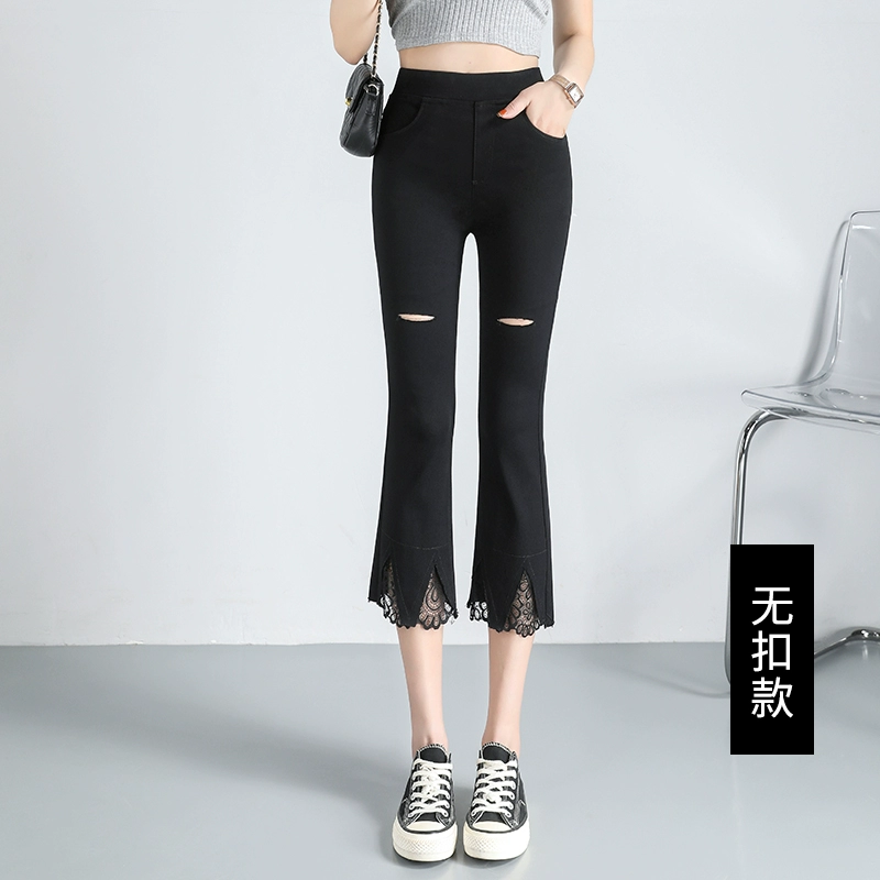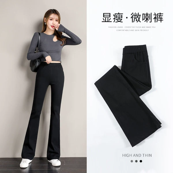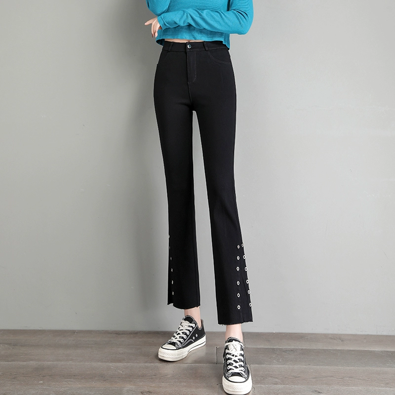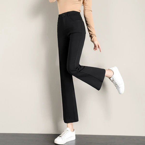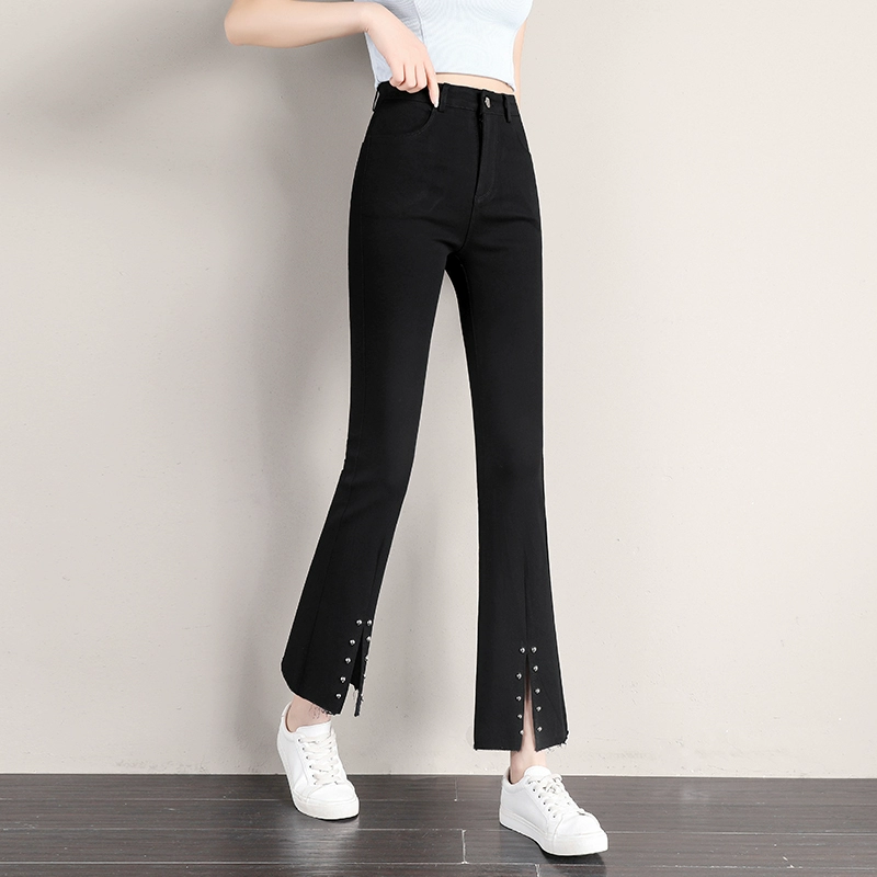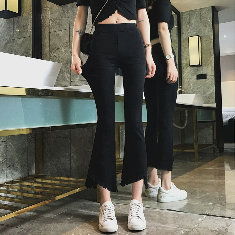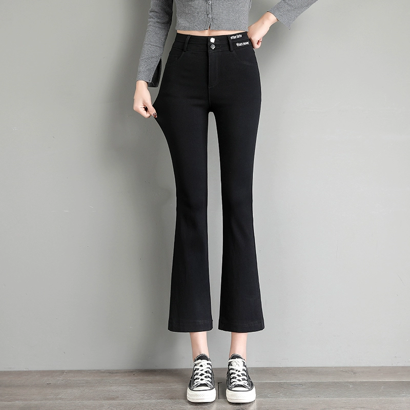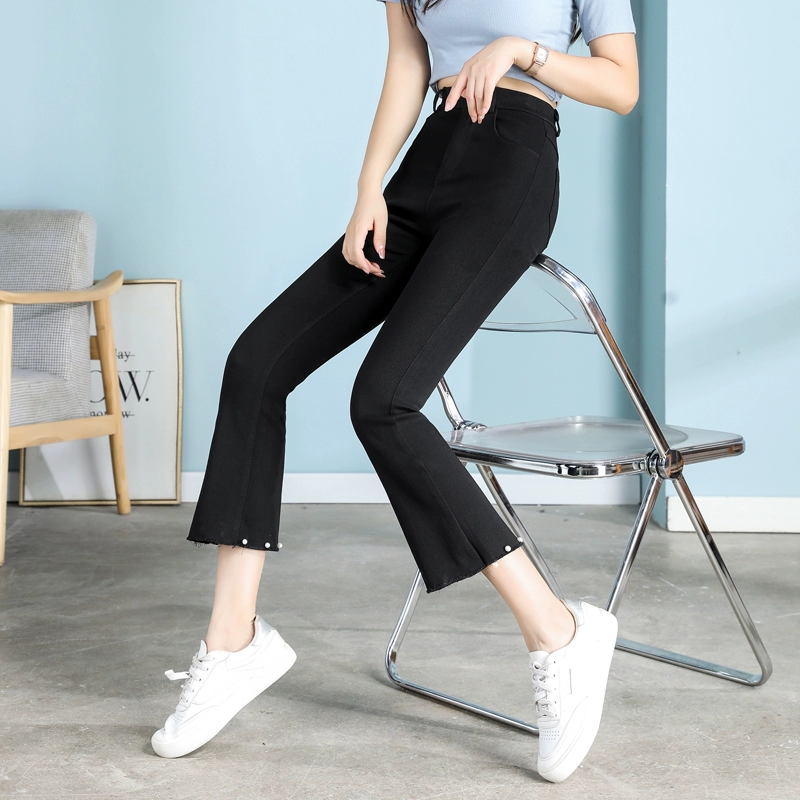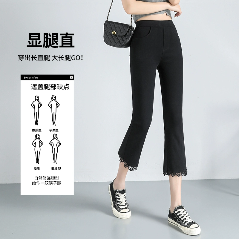 Stretch spring and summer nine-point high-waist slim black bootcut pants