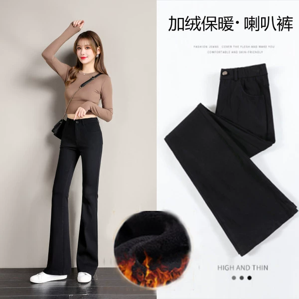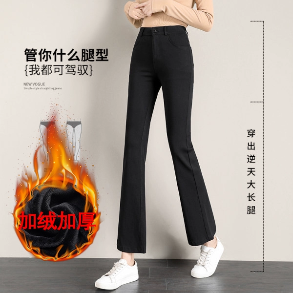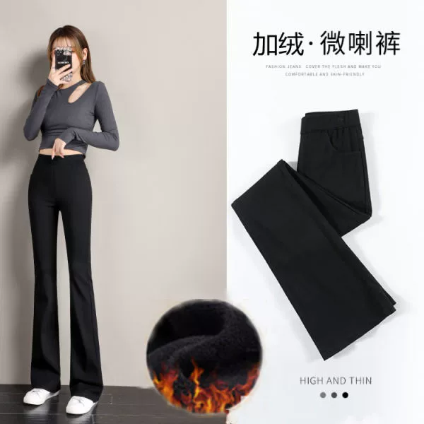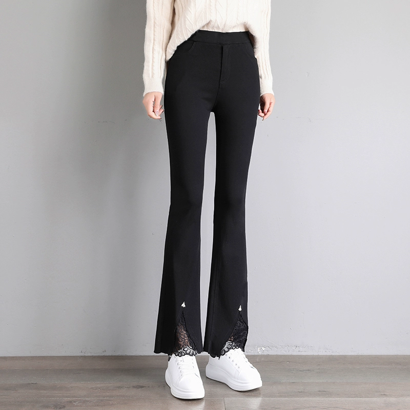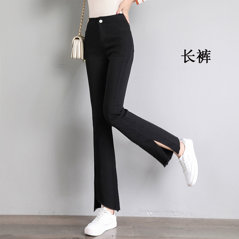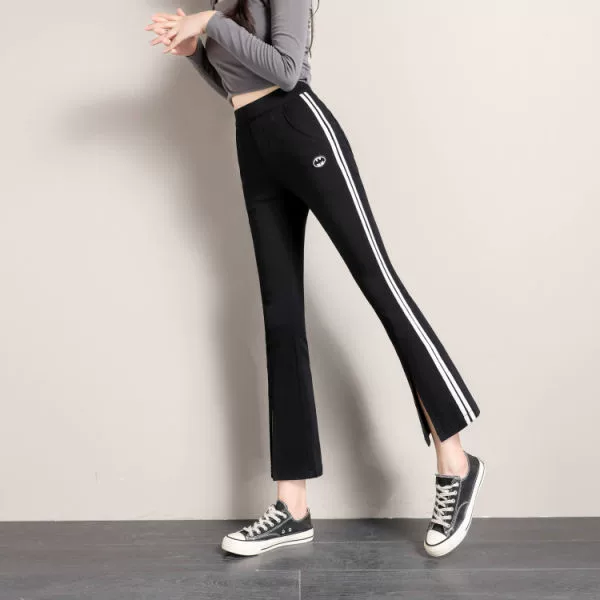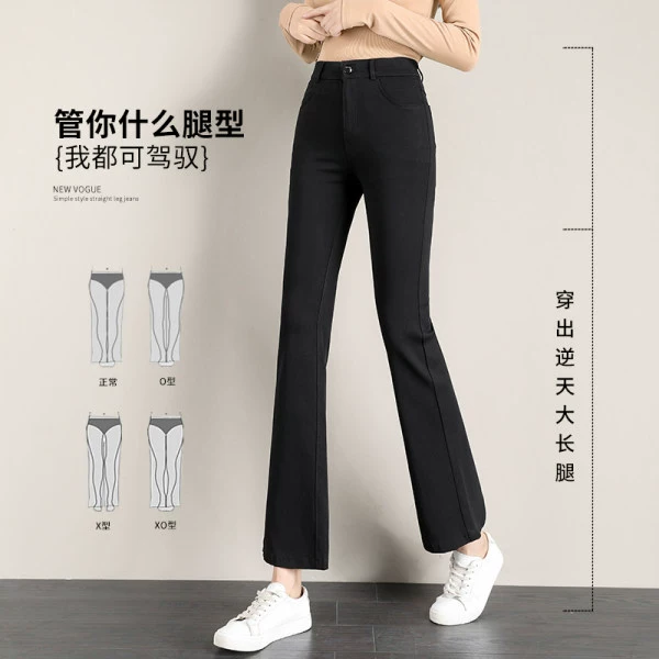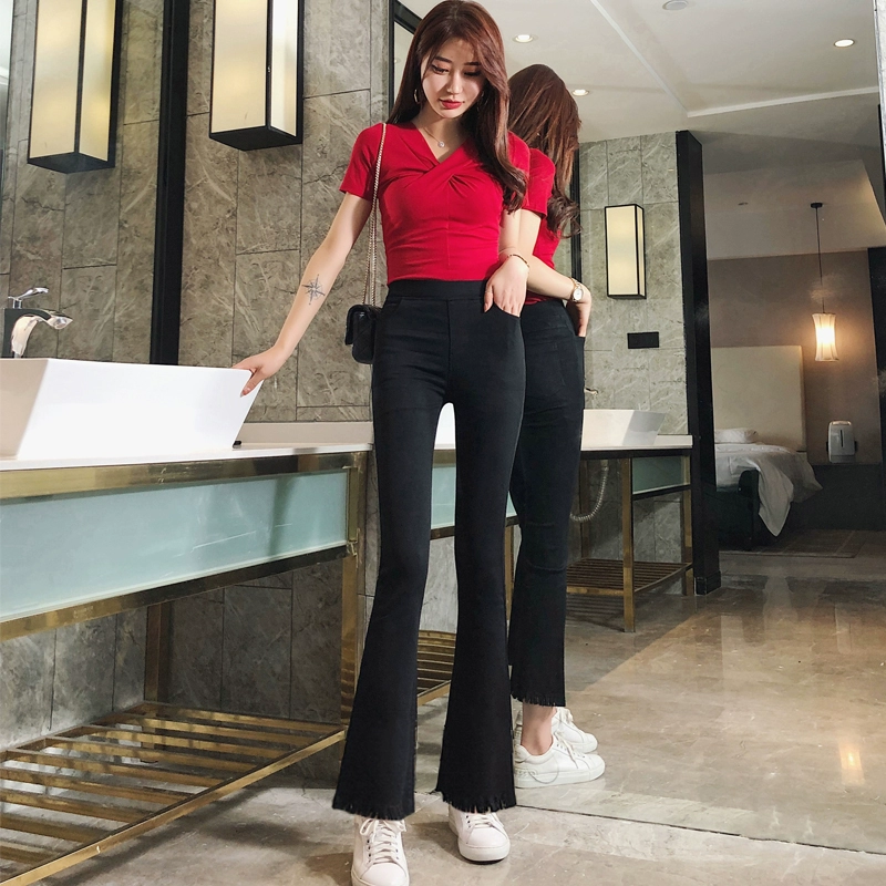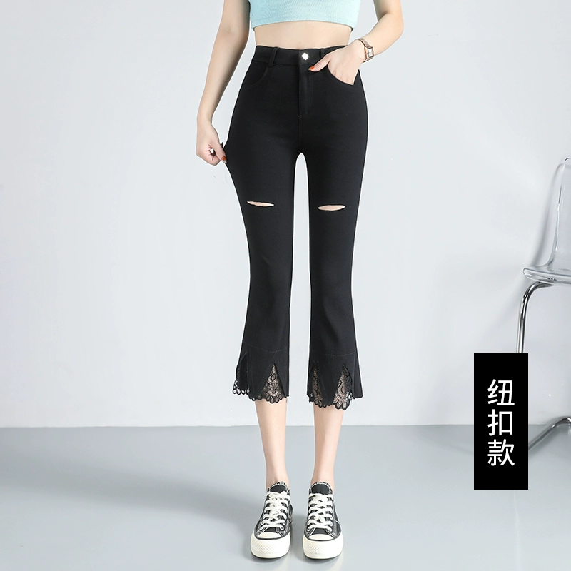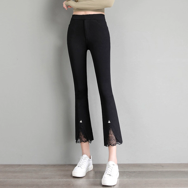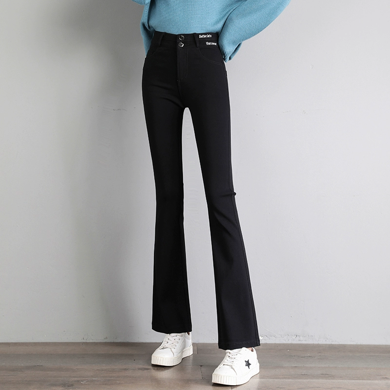 Stretch spring and summer nine-point high-waist slim black bootcut pants