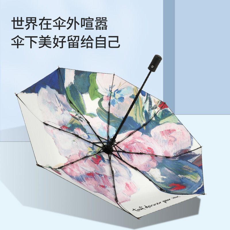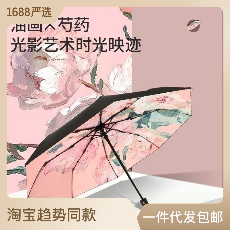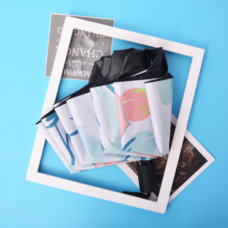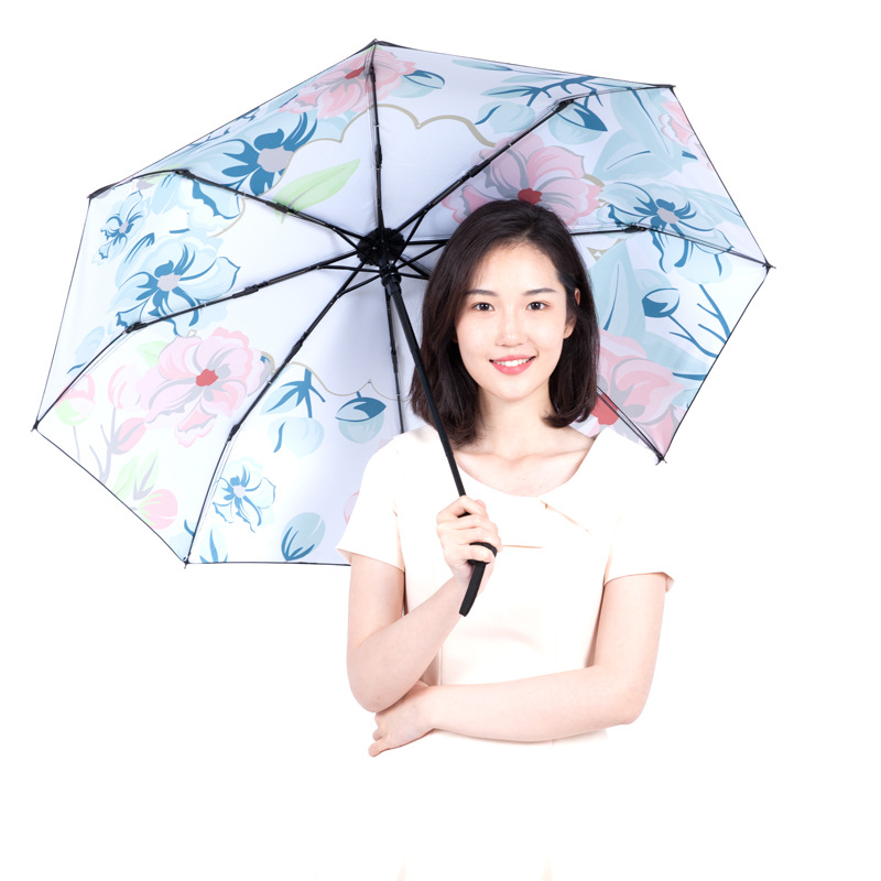 Strictly Selected Automatic Black Rubber Sun Umbrella Women’s Sun Protection Umbrella Sunny and Rain Umbrella Folding UV Protection Three-fold