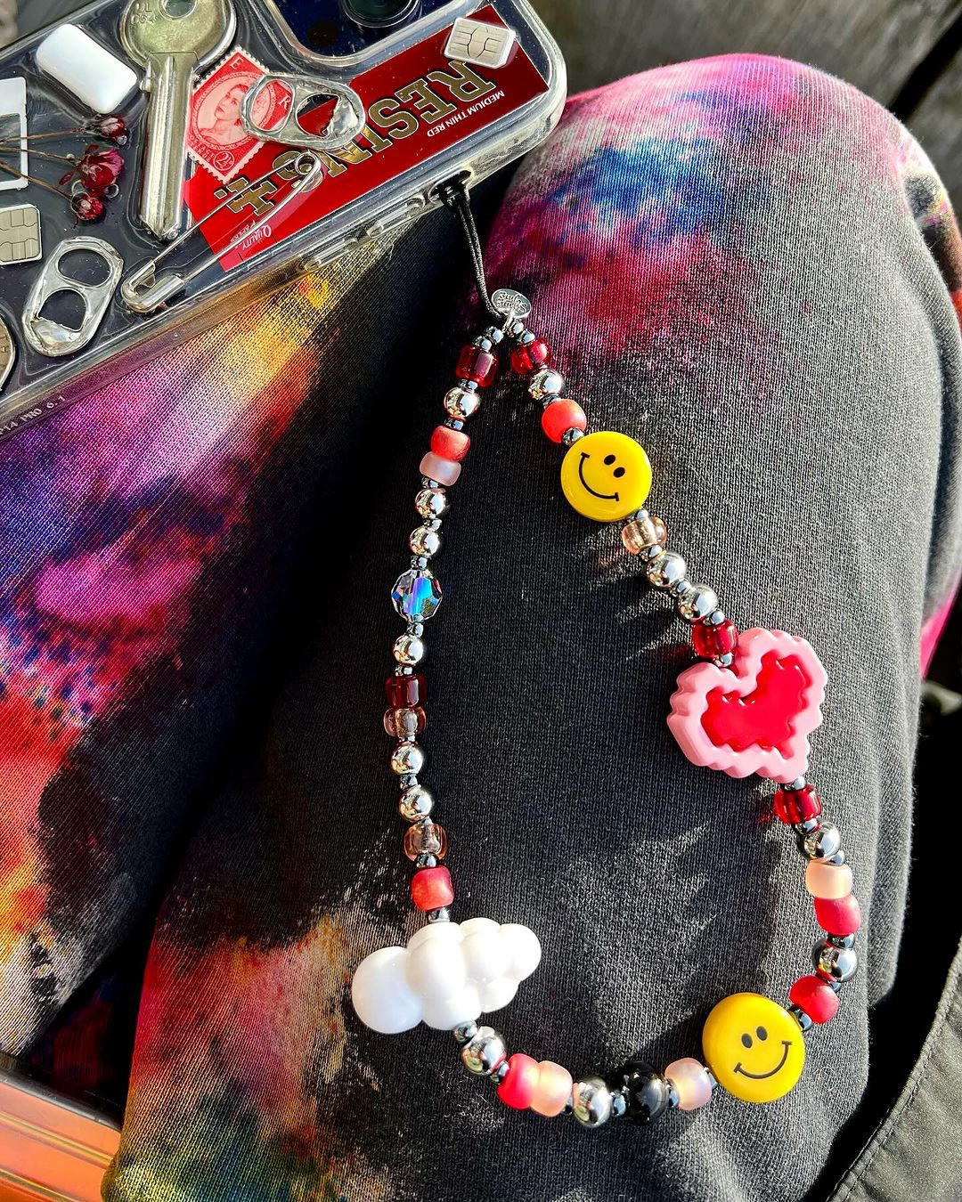 Stringting Shijia Crystal Building Blocks Heart Love Smiley Face Mobile Phone Chain Cloud Cute Wrist Rope Short Style