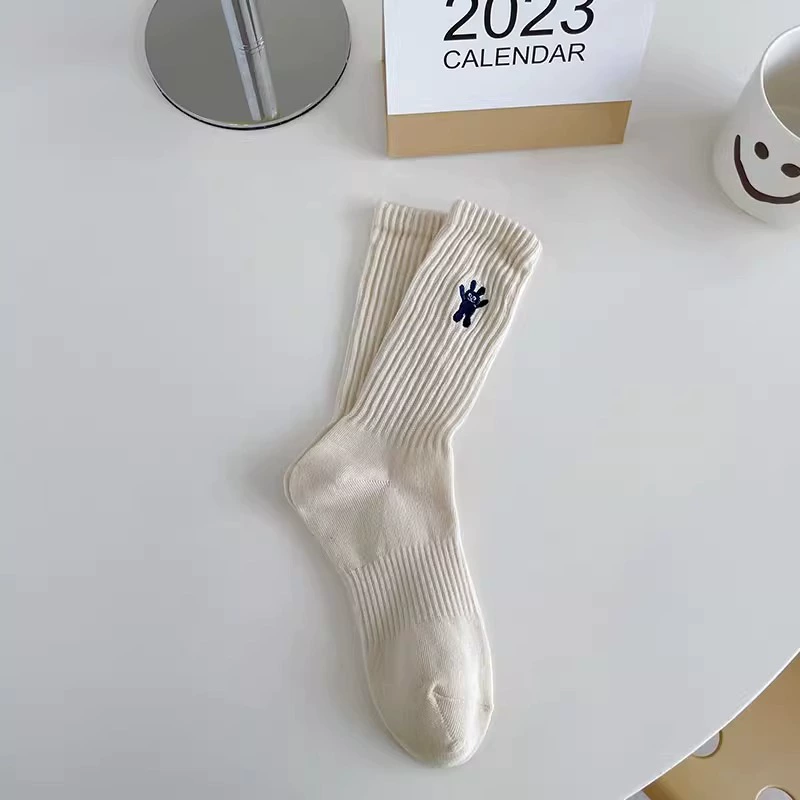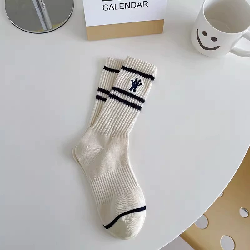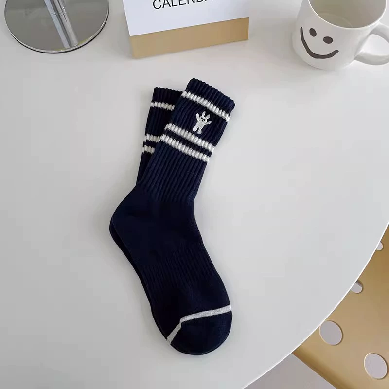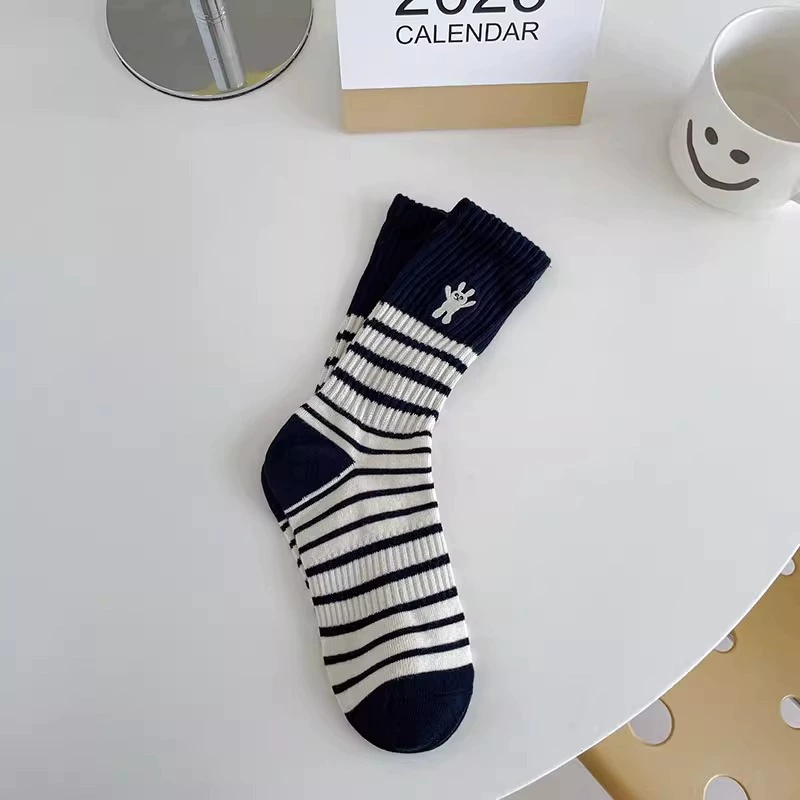 Striped rabbit socks for women’s middle tube socks pure cotton ins trendy spring and autumn Japanese cute sports autumn and winter pile stockings