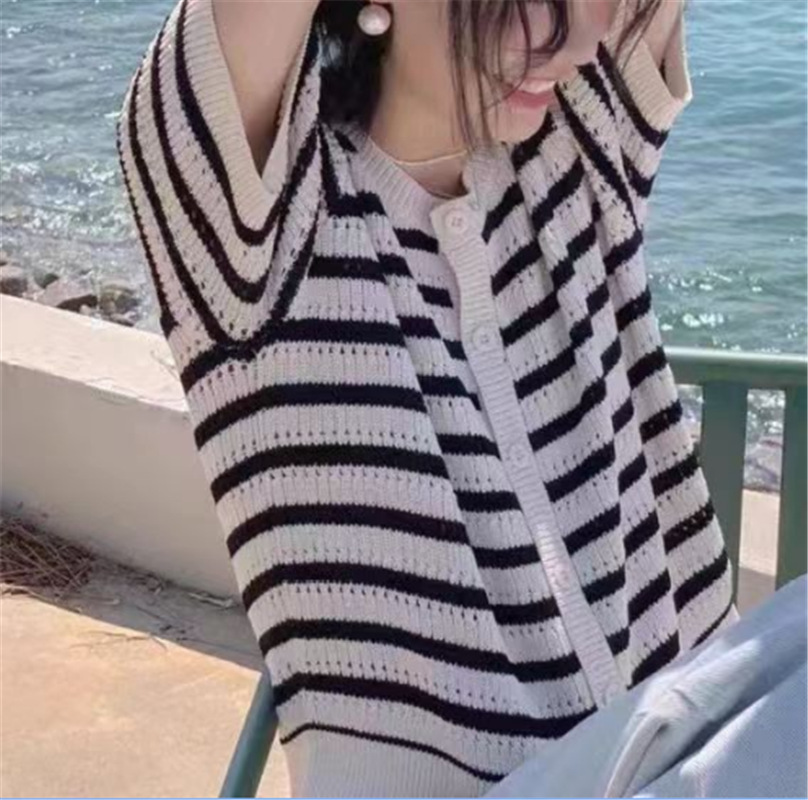 | nameOriginal | Striped Chanel Style Knitted Cardigan Women's Thin Ice Silk Short-sleeved Shirt Women's Summer New Loose Sunscreen Hollow Top |