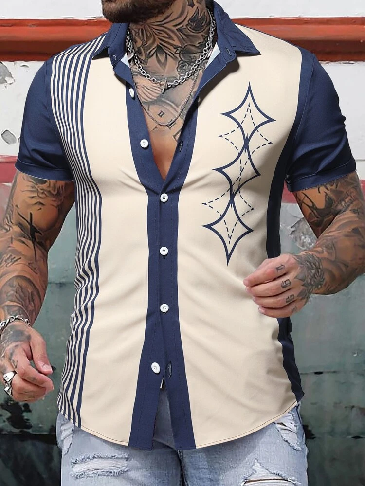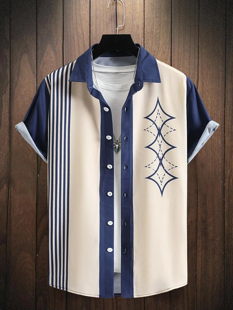 | nameOriginal | Men Striped Print Color-Block Shirt Without Tee |