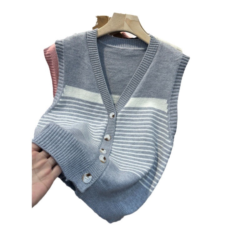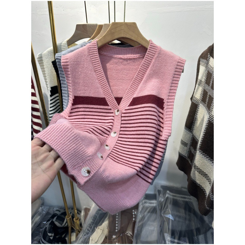 | nameOriginal | Striped Color-matching Knitted Vest 2024 New V-neck Loose Sleeveless Vest Stylish Vest for Outer Wear |