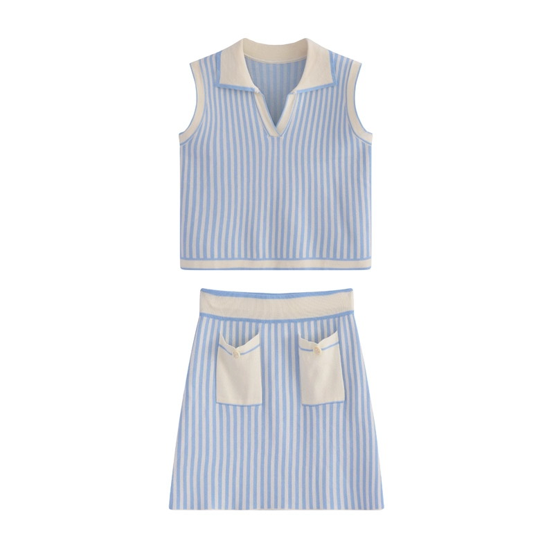 | nameOriginal | Striped contrast pocket patchwork A-line skirt fashion suit |
