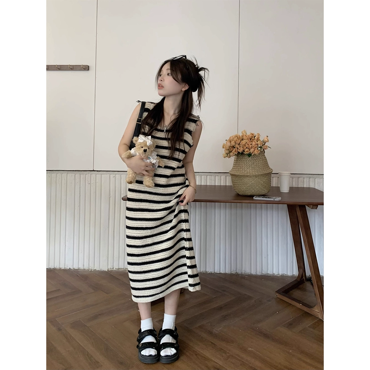 Striped hole dress new summer loose vest