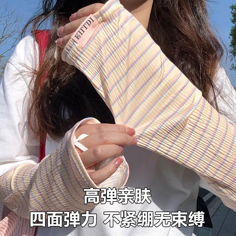 Striped INS sunscreen ice sleeve female summer anti -ultraviolet air -breathable large size loose outdoor driving riding spot