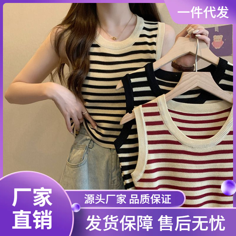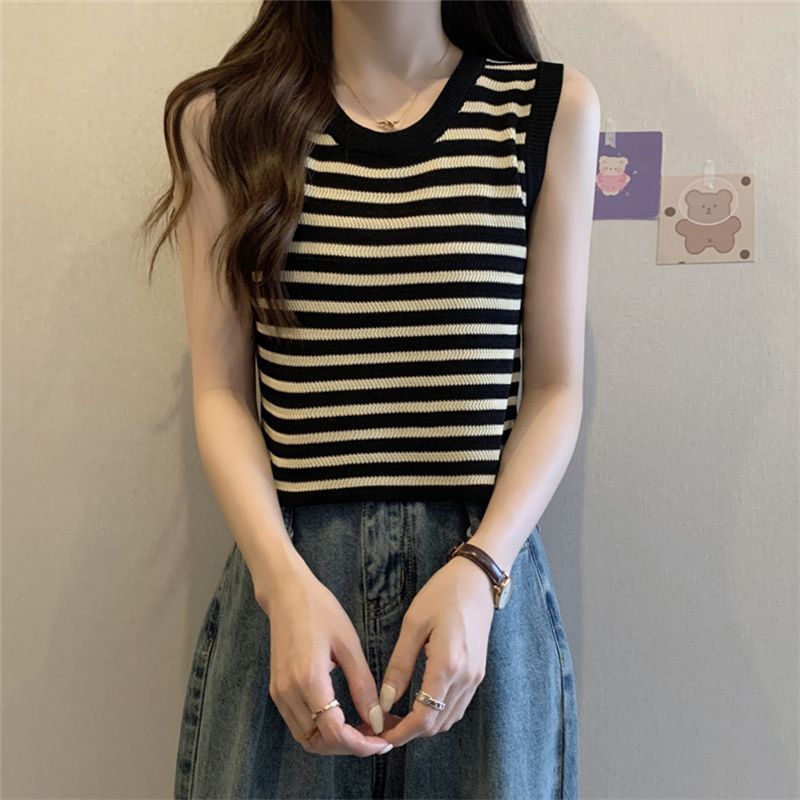 | nameOriginal | Striped Knitted Camisole Women's 2024 Summer New Round Neck Sleeveless Waistcoat Outer Base Shirt Top |