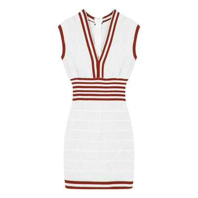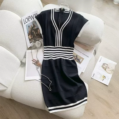 | nameOriginal | Striped knitted vest dress for women summer sleeveless hottie v-neck sexy short skirt with waist and hip-hugging skirt |