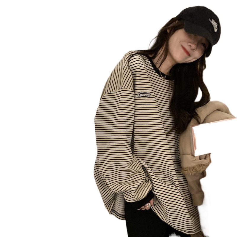 Striped Long-sleeved Sweater Women’s 2024 Autumn New Base Shirt Crewneck Korean Loose All-match T-shirt Casual Top