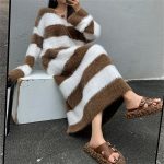 | nameOriginal | Striped Mink Hair V-Neck 2023 Autumn and Winter New Women's Loose Lazy Style Long Over-Knee Slimming Elegant Knitted Dress |