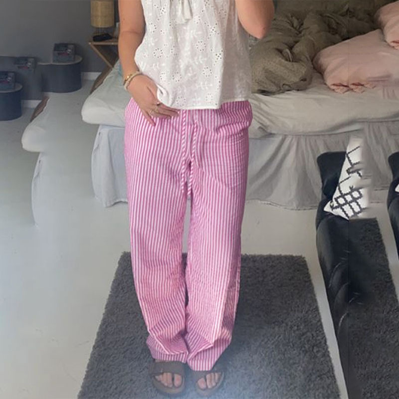 | nameOriginal | Striped Pants Women's Wide-legged Pants Spring and Summer 2024 New Korean Style Lazy Style Elasto Waist Drawstring Casual Pants |