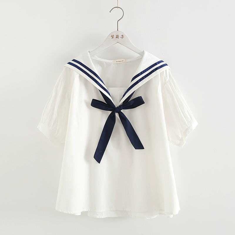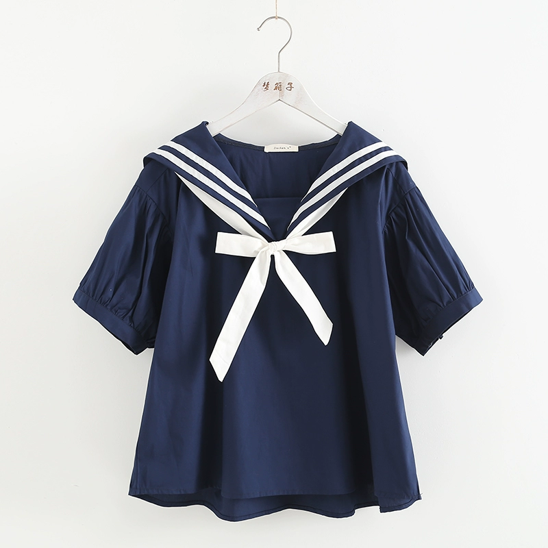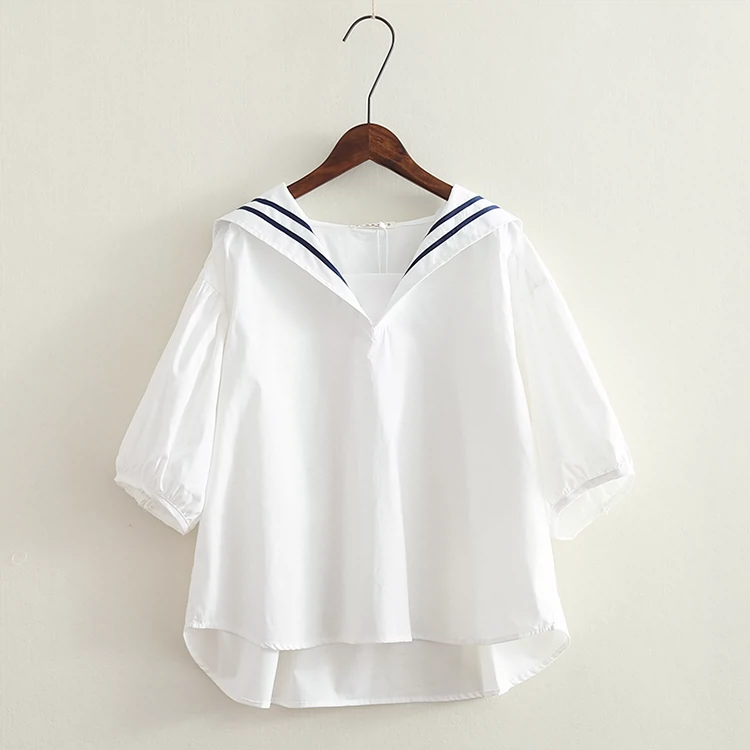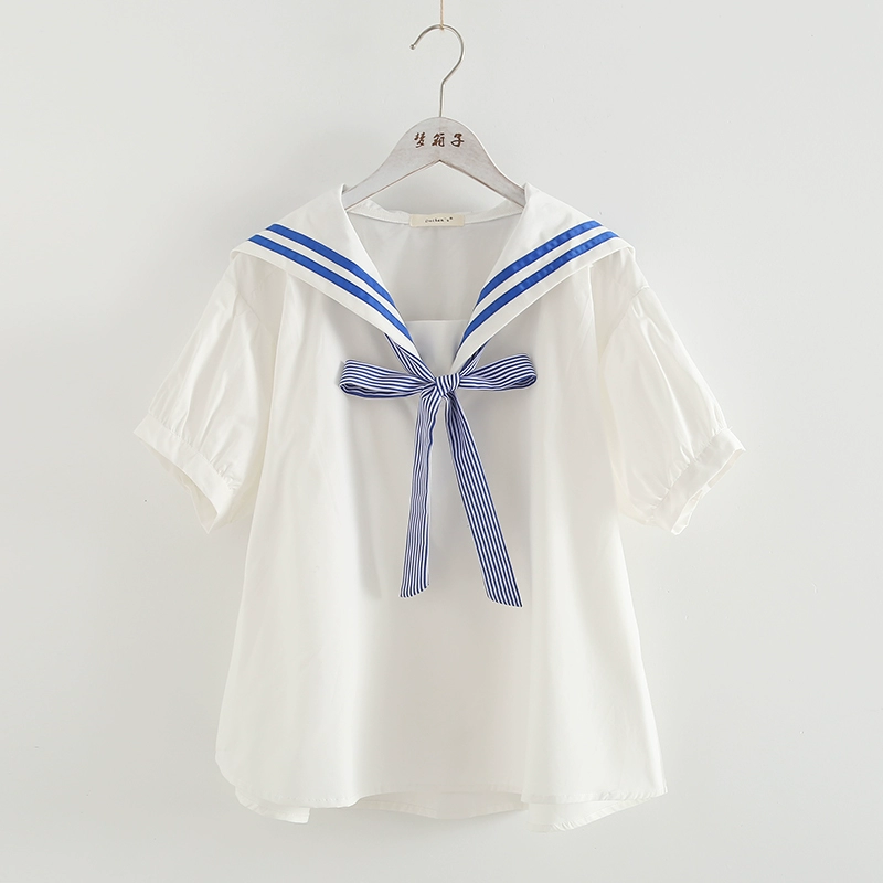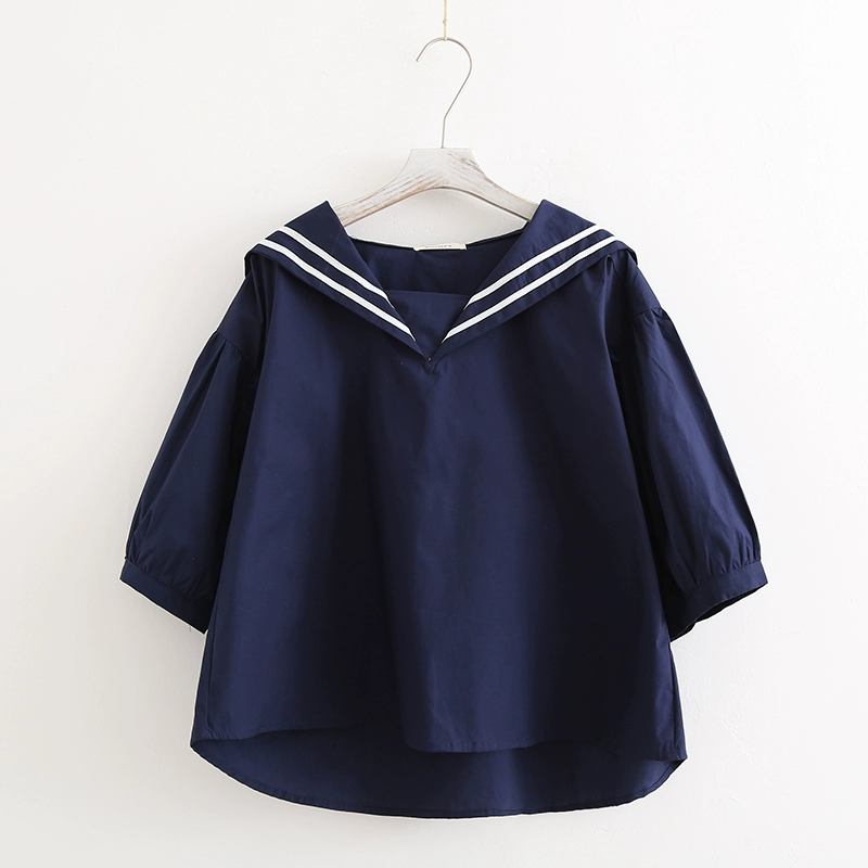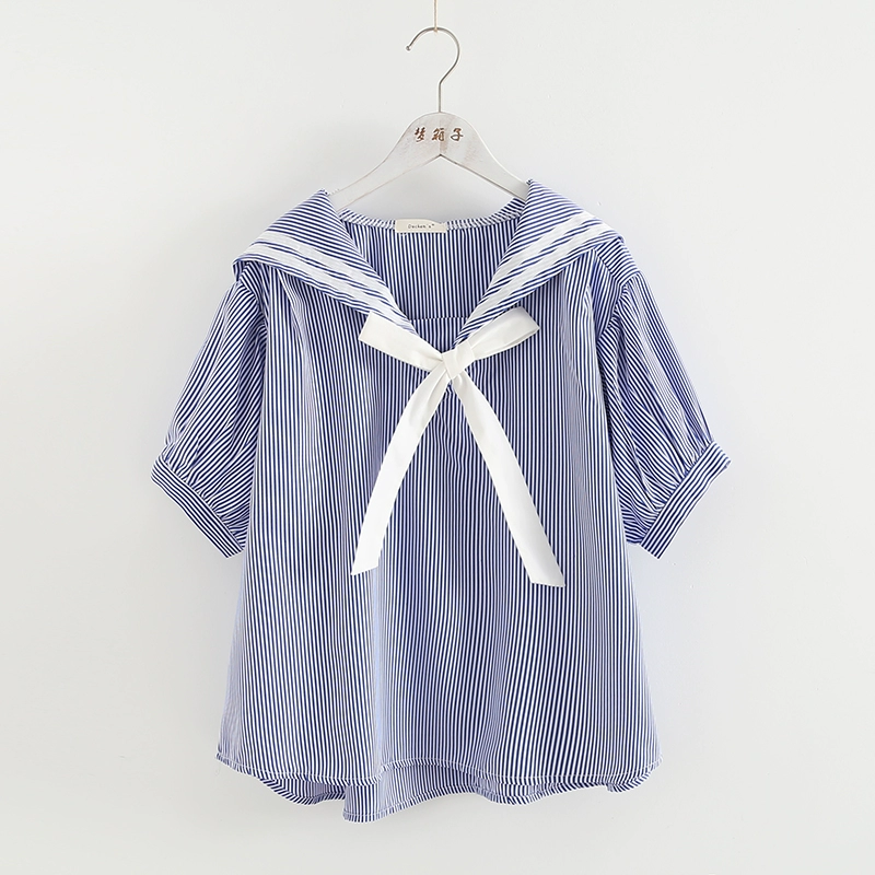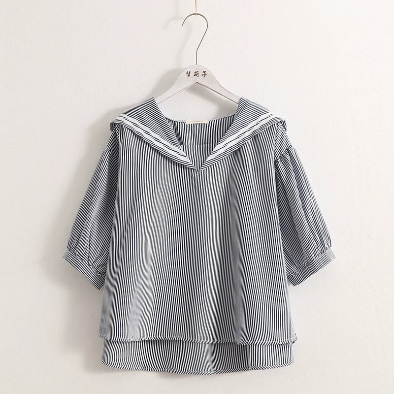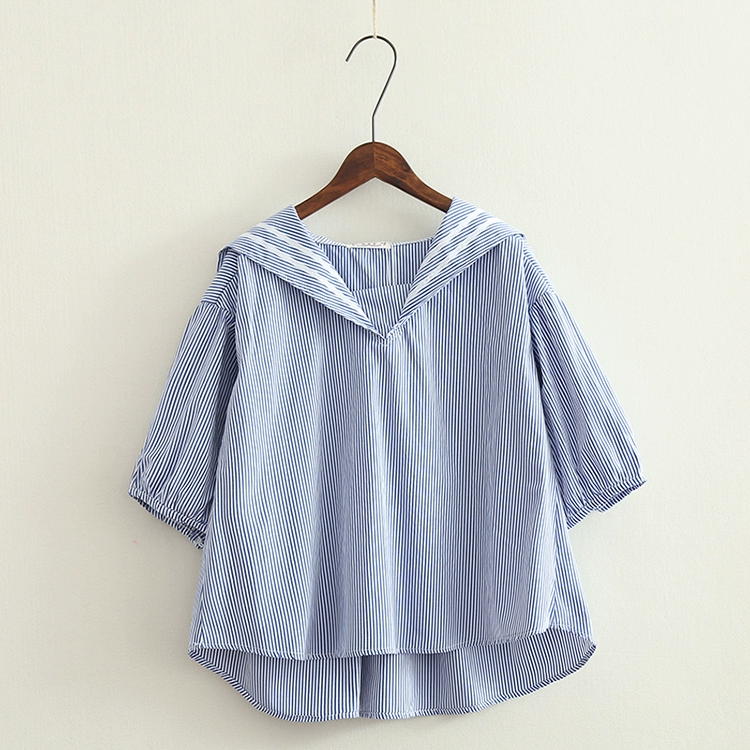 | nameOriginal | Striped patchwork navy collar loose babydoll shirt |