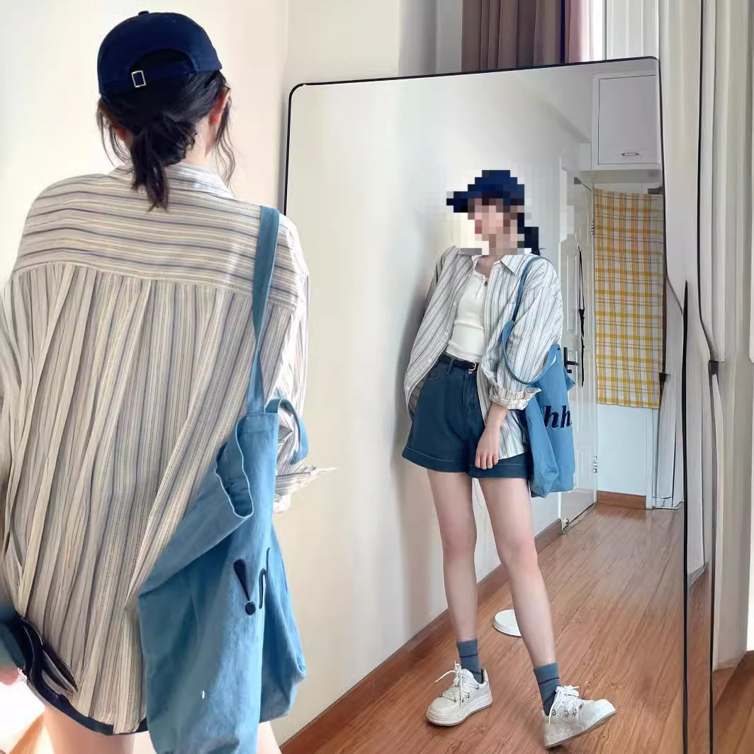 Striped Shirt Coat Women’s Spring and Autumn New Style Shirt French Long Sleeve Top Thin Design