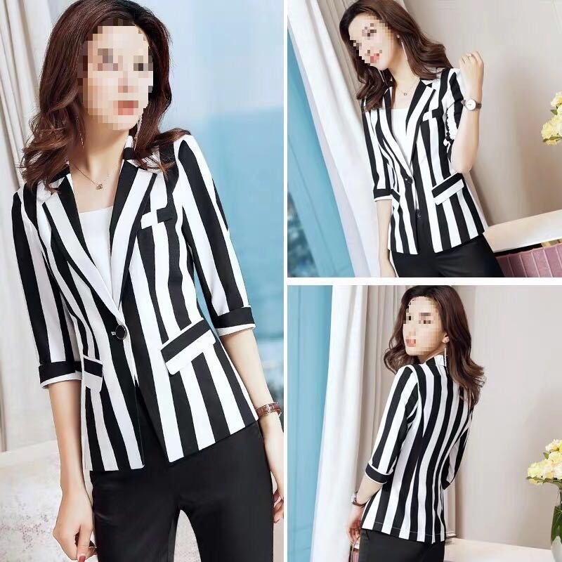 | nameOriginal | Striped Small Suit Jacket Women's Fashion plus size 2022 Spring and Autumn New Suit Slim-fit Slimming Waist Short Top |
