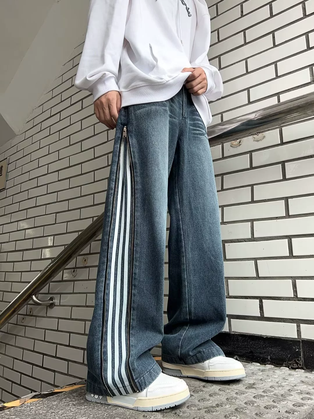 | nameOriginal | Striped Spring and Autumn American Retro Drape Jeans |