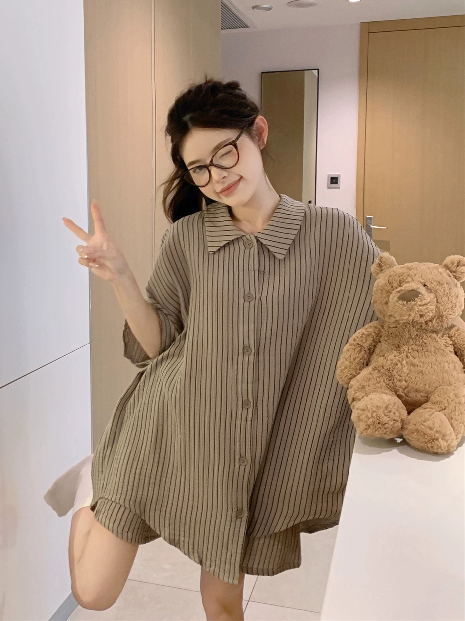 Striped versatile home wear women’s chic short-sleeved pajamas