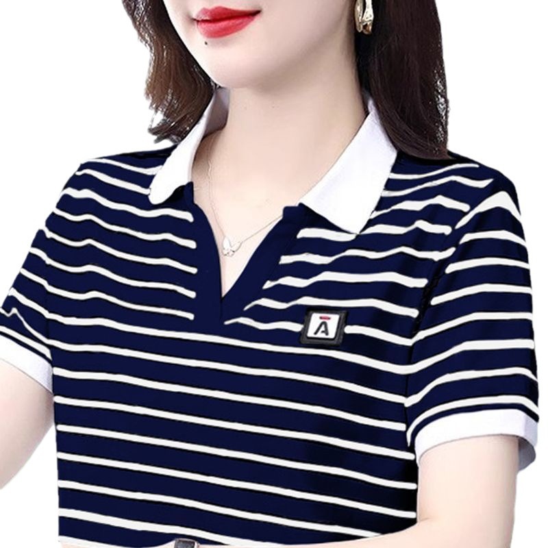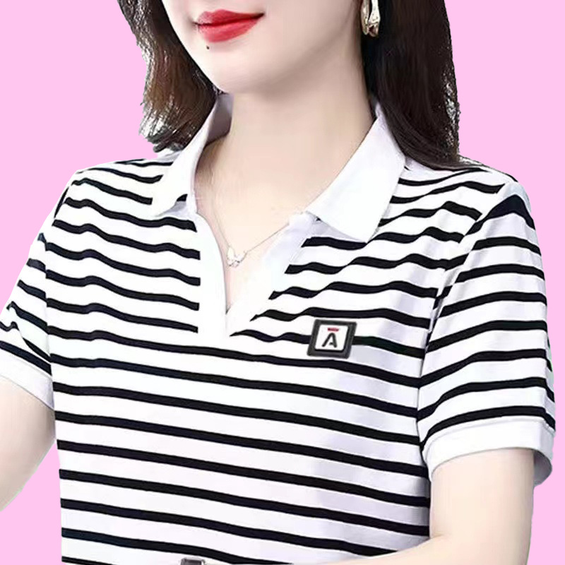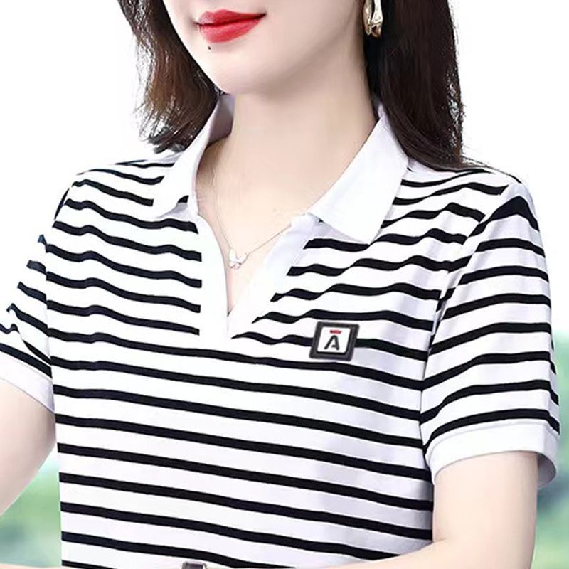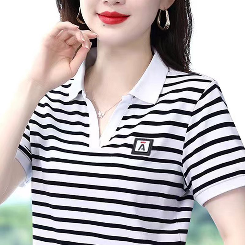 Striped Women's Short-sleeved T-shirt Women's Summer 2024 New Style Casual Age-reducing Slim-fit Slimming All-match Top for Moms