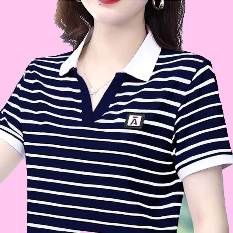 Striped Women’s Short-sleeved T-shirt Women’s Summer 2024 New Style Casual Age-reducing Slim-fit Slimming All-match Top for Moms