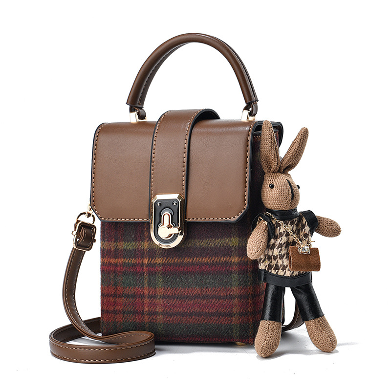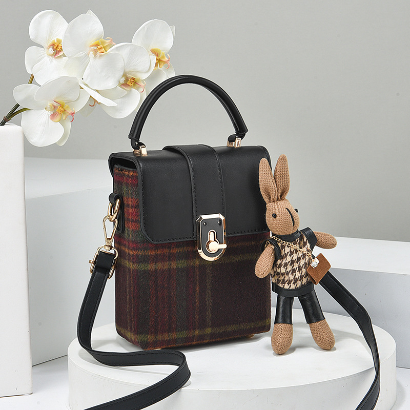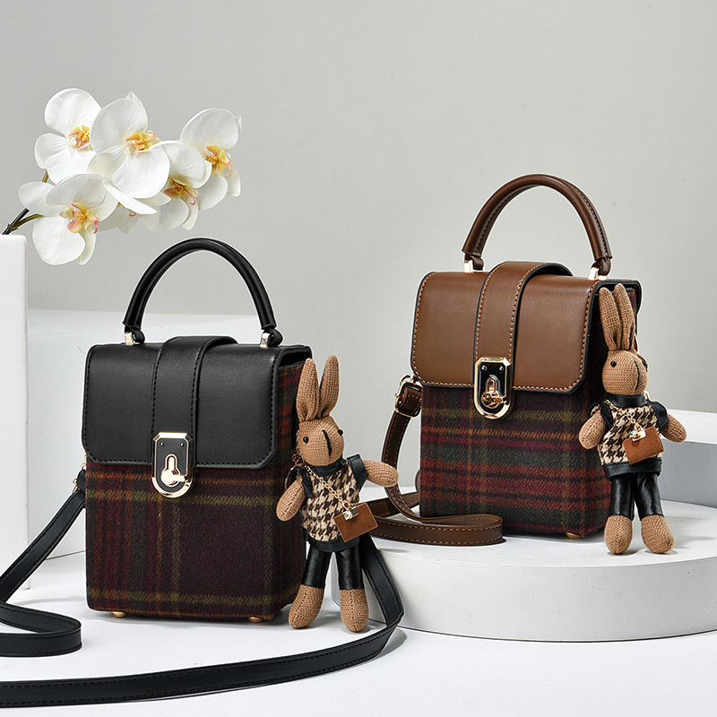 Striped woolen bag for women 2023 autumn and winter New Korean style fashionable shoulder small square bag high-grade crossbody phone bag