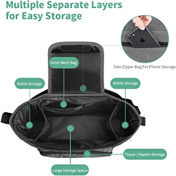 Say goodbye to the hassle of carrying multiple bags and struggling to find what you need while out with your baby. With the Baby Stroller Organizer, you’ll have everything you need right at your fingertips, making your life as a parent just a little bit easier. Order yours today and experience the convenience and functionality of this must-have stroller accessory!