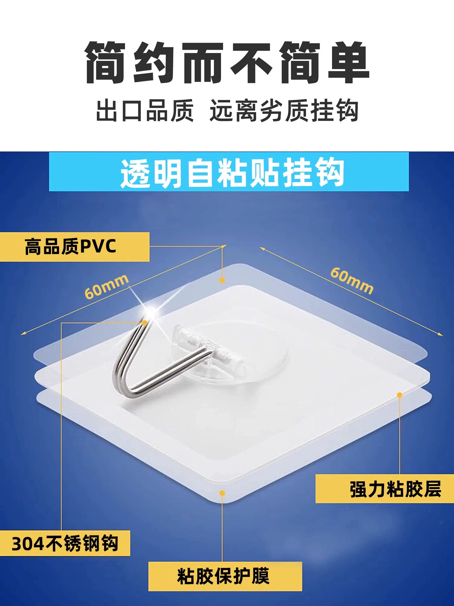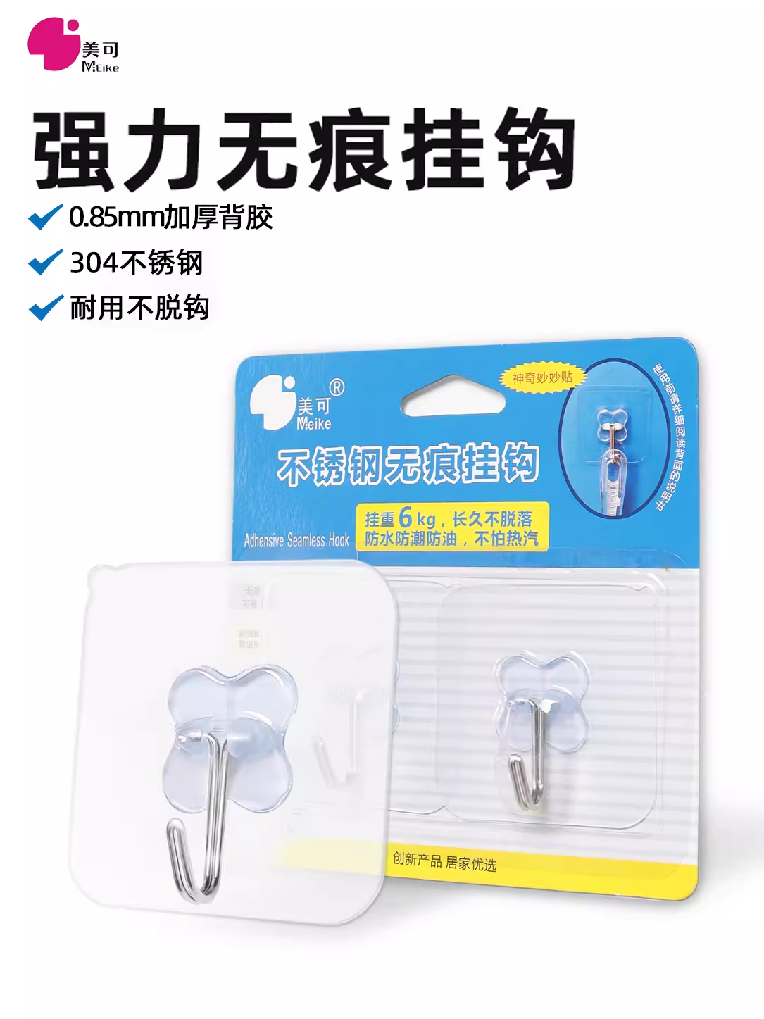 | nameOriginal | Strong adhesive stainless steel traceless hook super load-bearing adhesive hook kitchen bathroom transparent invisible wall hanging clothes hook |