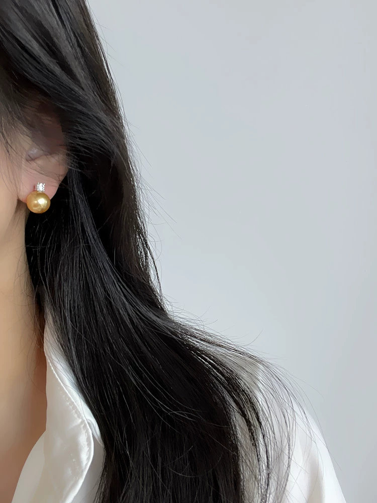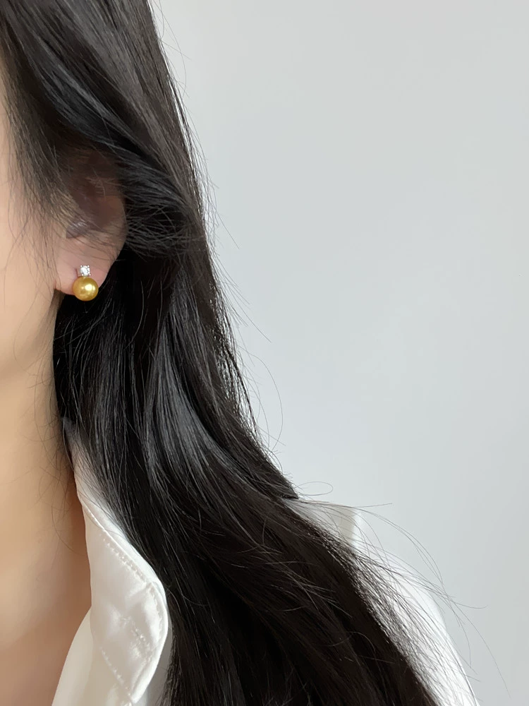 | nameOriginal | Strong light round South Sea golden crystal pearl Princess Diana earrings all-over sterling silver light luxury high-end earrings versatile for women |